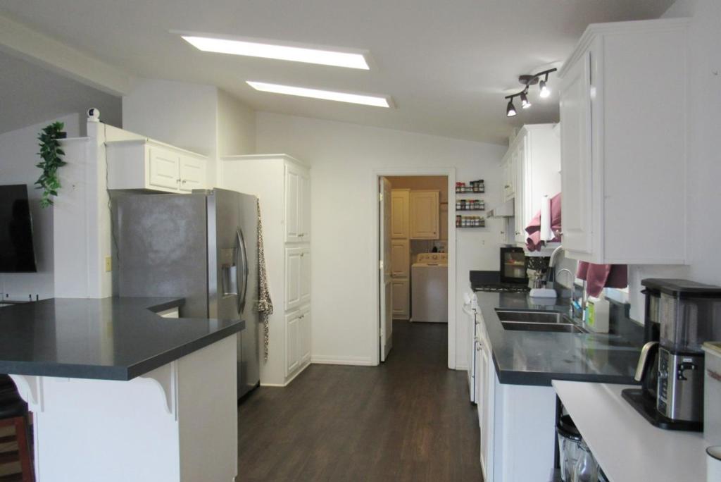 This beautifully SUN LIT home has plenty of natural light, shining through the many dual-pane windows. Gorgeous wood laminate flooring throughout. Great location just a few doors down from the clubhouse, pool, and spa. Entertain your family and friends inside the large living room/dining area or outside in the beautifully landscaped yard. One of the guest bedrooms has a sliding glass door out to the spacious porch. The main bedroom offers a large, custom walk-in closet and a private bath with dual vanities and a large step-in shower. Central heating & A/C. Laundry room comes with washer/dryer and lots of additional storage. Custom spacious fireproof shed at end of driveway 1999 Silvercrest S/N KCCA01K90832A/B