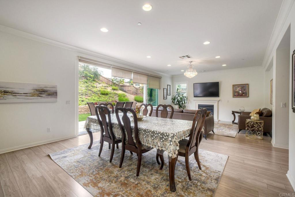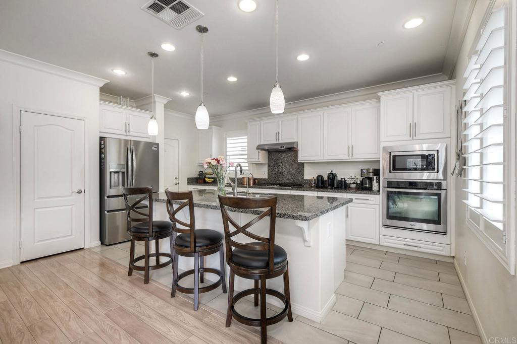 Beautiful 2013-built Rancho Santalina home on an elevated 0.17-acre corner lot with sweeping views. This move-in-ready multi-generational residence offers 4 bedrooms, 3 full baths, a private downstairs bedroom, a standalone bath with stall shower, and a spacious upstairs enclosed loft. The comfortable primary suite features dual sinks, a soaking tub, walk-in shower, and separate his-and-hers wardrobes. The 2,608 sq ft interior boasts premium flooring, crown molding, custom window treatments, bidet toilets, and a gourmet kitchen with an upgraded stove & double stainless sinks on the island. A dramatic 4-panel sliding door opens to a beautifully landscaped backyard with a wraparound concrete patio, retaining wall, lush lawn, and 14+ fruit and vegetable trees—perfect for effortless indoor-outdoor living. Modern upgrades include a RainSoft whole-home water purification system, CleanStart laundry system, 27-panel owned solar, and EV charger. Washer, dryer, laundry cabinetry, and outdoor dining set may convey. Ideally located near shopping, dining, schools, Palomar College, California State University San Marcos, and easy access to Highway 78.