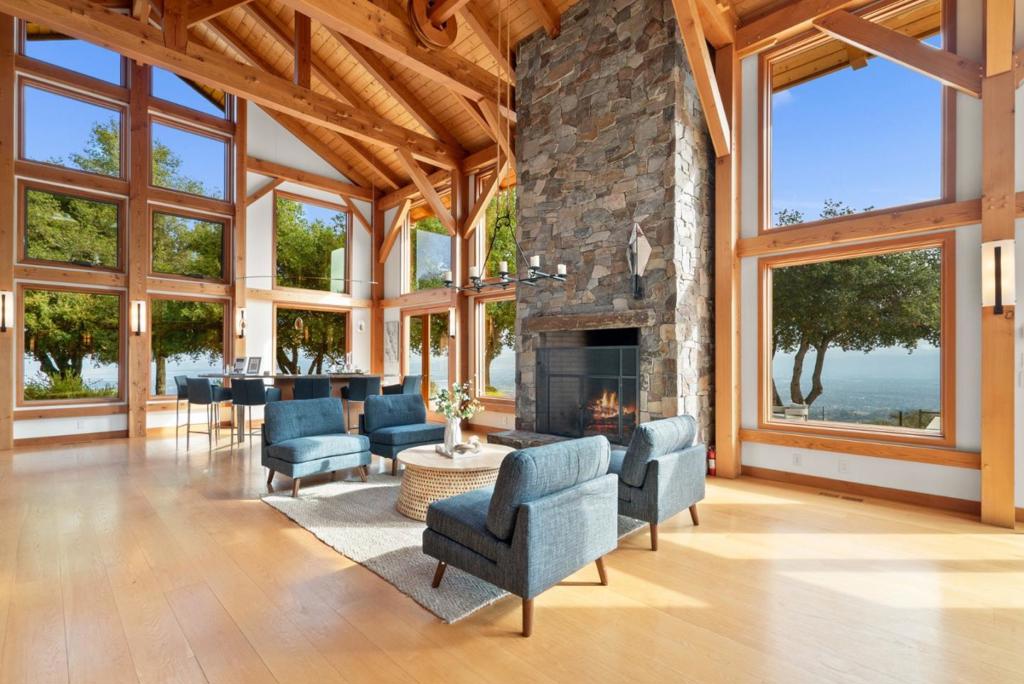 Exceptional opportunity to acquire a rare Cupertino estate with panoramic views of Silicon Valley. This property includes a luxury residence, a fully operational winery, and 0.5 acres of mature Cabernet Sauvignon estate vines, all set amongst world-class wineries. A custom-built entertainment building is designed for high-capacity use, offering soaring ceilings, expansive windows overlooking a solar heated pool with outdoor shower, full bathroom, dual fireplaces, wet bar, family room, loft, office with built-in cabinetry, integrated audio system, and an observatory. The residential component consists of 3 bedrooms and 2 full bathrooms, with views from every room, including a primary suite with walk-in closet and ensuite bath. The gourmet kitchen is equipped with high-end appliances, quartz countertops, and a commercial dishwasher. The winery building is a full production facility featuring a bottling room, 4 large fermentation tanks, cellar, temperature controlled storage, all for operational use or flexibility for alternative uses. Fully owned solar panels offset the majority of energy costs, and there are 2 separate two-car garages (one with EV charging), and on-site parking suitable for large events. Conveniently located near hiking trails, wineries, and Cupertino schools.
