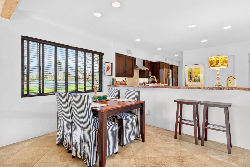 Discover this hidden GEM at Mission Hills Country Club. This beautifully remodeled 2 bedroom, 2 bath residence is offered furnished per inventory list and provides exceptional privacy as a quiet end unit that truly lives ''like a freestanding home''. Thoughtfully reimagined with an ''open great-room'' concept, the home showcases elegant travertine flooring with plush carpeted bedrooms. Two fireplaces-including one in the primary suite; while a well-designed layout that feels far more spacious than the square footage suggests. The gourmet kitchen features high-end appliances, highlighted by a Wolf range, and flows seamlessly into the living and dining areas-ideal for both everyday living and effortless entertaining. Enjoy multiple outdoor retreats, including a gated entry patio and a second, incredibly private patio that ''is truly charming''.Additional features include a dedicated laundry room w/storage & a detached two-car garage. Set within an iconic destination in the heart of Rancho Mirage-where legends have played & unforgettable moments are-created MHCC offers 54 holes of championship golf across three celebrated courses, premier racquet & sport facilities, and an impressive collection of exclusive amenities. From exceptional on-site dining & resort style poolside relaxation to a state-of-the-art fitness center & indulgent spa treatments, camaraderie, legacy, & joy come together to create a ''lifestyle'' that is both timeless & vibrant.