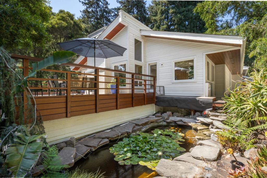 Welcome to this exceptional 3-bedroom, 2.5-bathroom residence with a charming detached 2 bedroom guest cottage nestled in between Santa Cruz and Scotts Valley. Offering over 3,361 sq.ft. of thoughtfully designed living space, a private gate leads to this home that sits on over 3.5 acres of serene land. The gourmet kitchen is a chef's dream, featuring granite countertops, custom cabinetry, a large center island with sink, and high-end appliances. The adjoining dining area, set beneath a skylight in the living room, creates a warm and inviting space for everyday meals or entertaining. This home showcases a beautiful blend of wide plank hardwood, stone, and carpet flooring, all finished to the highest standards. Artisan-crafted woodwork graces every corner of the home, elevating it to a class of its own. The primary bedroom features a huge walk-in closet, soaking tub and walkout access to a jacuzzi tub. The spacious outdoor deck with redwood views, soothing rock waterfall and koi pond offer resort-like ambiance. The property also includes a remodeled, detached 2-bedroom guest cottage ideal for visitors or extended family. A three-car garage adds convenience and plenty of storage. Refined and move-in ready, this Santa Cruz gem combines luxurious comfort with natural beauty.