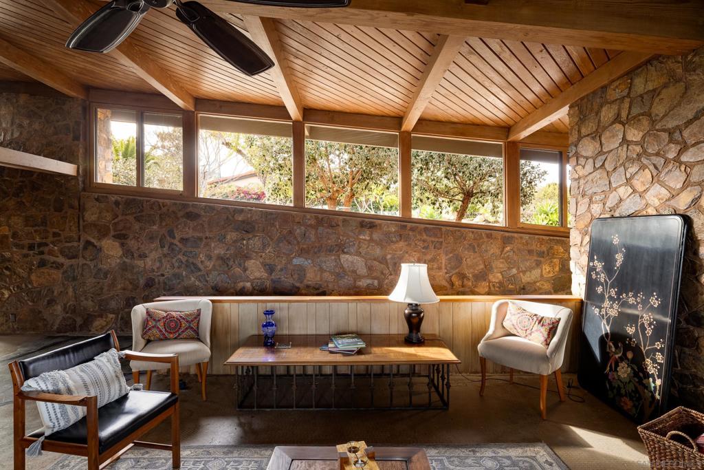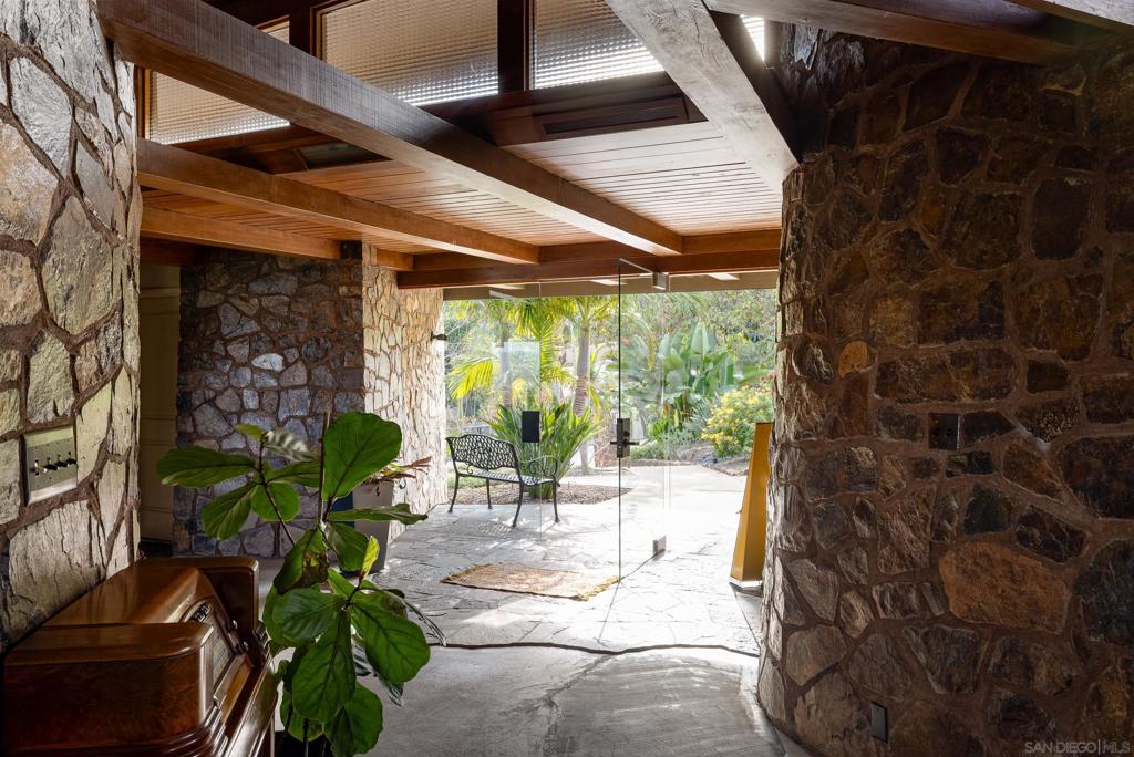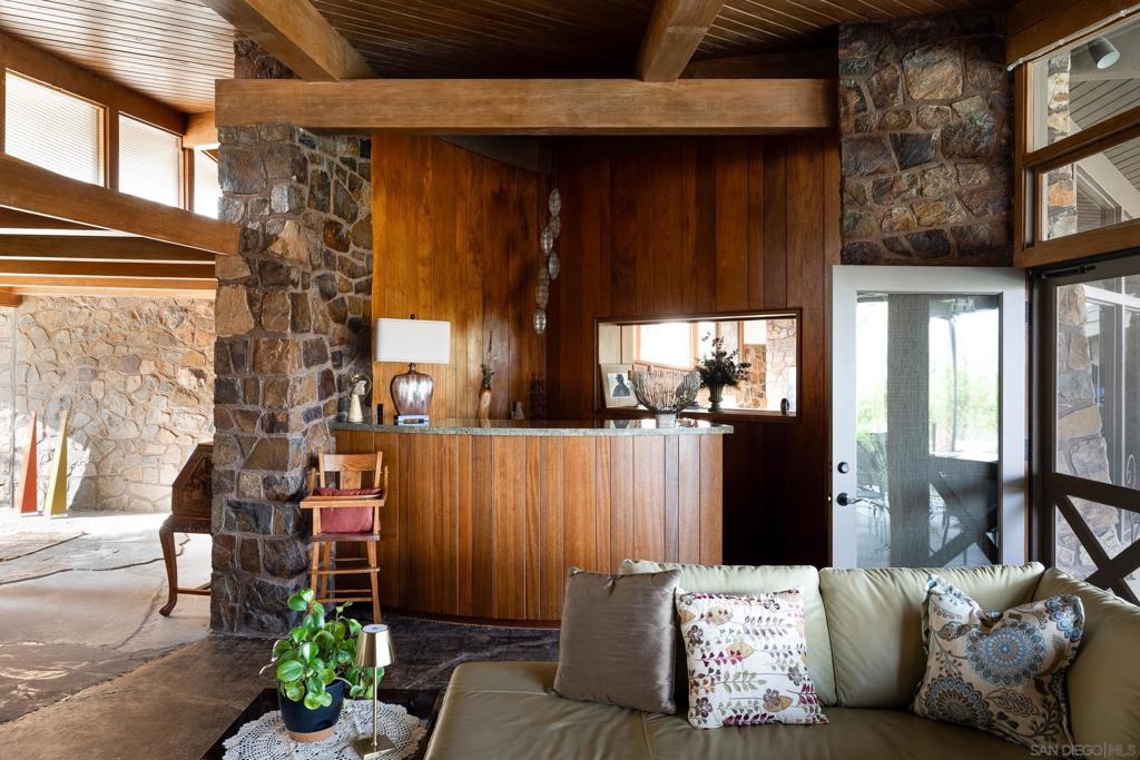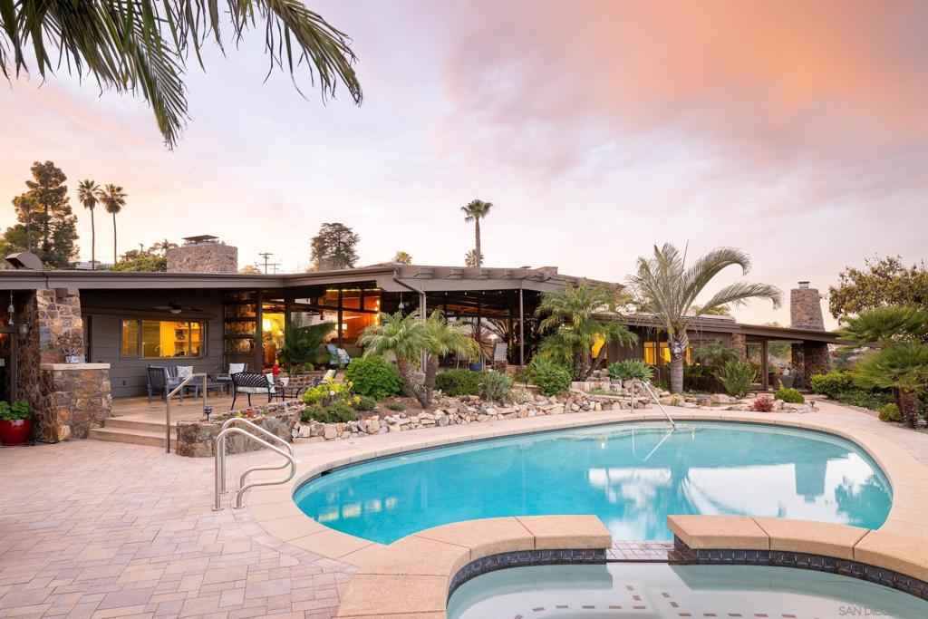 MID-CENTURY MODERN IN MT HELIX: The Jackson Residence by architect Lloyd Ruocco, immediately captures any visitor's attention with fantastic contrasts. While the concrete floors and rock walls follow the contours of its site, the home’s glass expanses and patio/pool area open up to the sky and views to the east county mountains. Historically designated, this private, expansive oasis engages all 1.5 acres. Multiple structures provide ample storage and even potential for a grand pool house. The property also hosts a significant number of permitted upgrades for the next owner to enjoy.