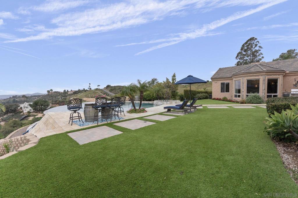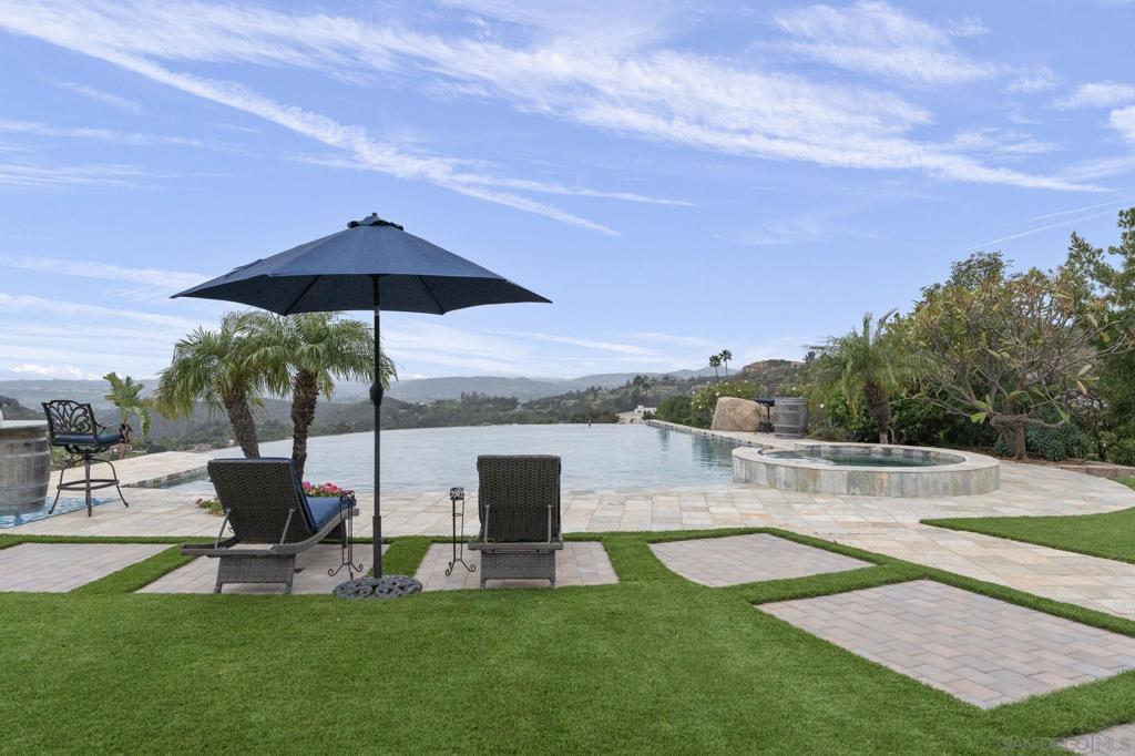 Welcome to one of the finest private estates in Poway. Situated on 2.86 acres, this breathtaking single-level residence offers luxury living, privacy, and panoramic views stretching to the ocean. The thoughtfully designed home features 4 spacious bedrooms, all en suite, a private executive office, and an expansive game room, providing both functionality and comfort for everyday living and entertaining. The kitchen exudes elegance with a large gas burner range, stainless steel double refrigerators, walk-in pantry, and plenty of counter space for dining and entertaining. The open layout seamlessly connects indoor and outdoor spaces, creating an effortless flow throughout the home. Step outside to a resort-style backyard complete with a stunning vanishing-edge pool, garden area, cozy outdoor fireplace, and sweeping panoramic views — perfect for entertaining or enjoying peaceful sunsets. This exceptional property combines elegance, space, and lifestyle in one extraordinary offering. A rare opportunity to own a premier estate in one of North County’s most desirable communities. Owned Solar **