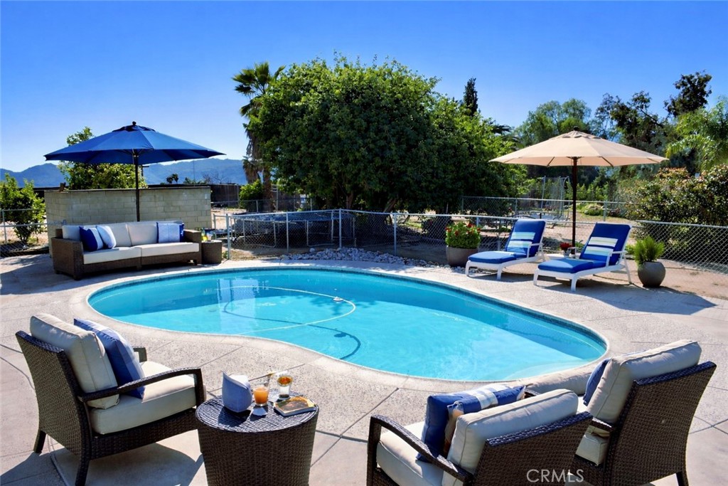 Welcome to 22081 Windtree Avenue, a beautifully remodeled home set on just under half an acre of flat, usable land with low taxes and no HOA. Offered for the first time in over 30 years, this exceptional property reflects true pride of ownership and has been thoughtfully updated for comfort, everyday living, and effortless entertaining. Located in a quiet, well-kept neighborhood of Wildomar, the home features 3 bedrooms, 2 recently renovated full bathrooms, and 1,812 square feet of interior living space and attached three-car garage. With newly painted exterior, fresh LVP flooring throughout, custom shutters, and a new sewer line, this home is truly move-in ready. The expansive yard includes a detached 1,000-square-foot, two-story Dutch barn—ideal for a home office, homeschool space, studio, or future conversion—while still offering ample room to add an ADU. Outdoor amenities include a fenced pool, mature fruit trees, and two large fenced side yards. One side yard is perfect for RV parking with an easy-access gate, while the other is ideal for a garden or chicken coop setup. Additional highlights include leased solar panels, a fire pit, and a regulation horseshoe pit—perfect for gatherings with family and friends! Conveniently located just minutes from freeway access and centrally positioned between San Diego and Los Angeles, this property offers the ideal blend of space, comfort, and accessibility. This is a rare opportunity to own a thoughtfully updated home with room to grow in one of Wildomar’s most peaceful communities.