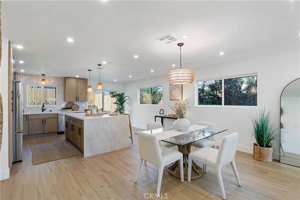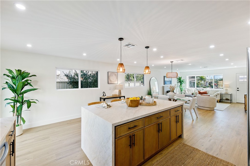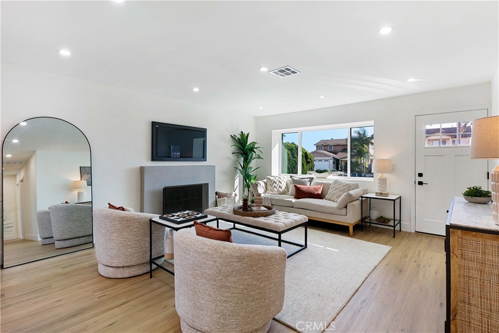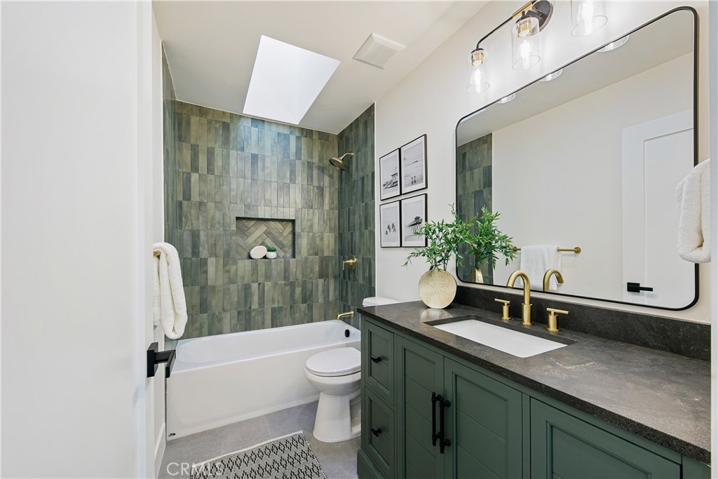 Tucked away on a quiet cul-de-sac in the sought after El Camino Village neighborhood, with underground utilities and an elementary school rating of 8/10 on greatschools.org, this fully remodeled home feels brand new, thanks to a meticulous renovation. From the new siding and paint, to the sleek skim coat walls, everything has been carefully considered. Micro cement adds a sophisticated and modern detail to the fireplace surround, the front exterior window trim, and the primary bathroom. Dual-paned windows fill the space with natural light, while stylish light fixtures and luxury vinyl flooring complete the look. The chef’s kitchen is as functional as it is beautiful. The spacious center island, topped with leather-finished quartz countertops is perfect for casual breakfasts or can be used as a buffet station at your next gathering. The open floor plan seamlessly connects the kitchen to the living and dining areas, making it perfect for entertaining. This home is built for the years to come, featuring a brand-new 200-amp solar-ready electrical panel and is also prepped and ready to support an electric car charger. The recently installed tankless water heater and new copper pipes add efficiency and reliability. The primary suite is a retreat of its own, boasting a walk-in closet, a Zen-like bathroom with timeless finishes, and a sliding door that opens to the private backyard. The backyard is ready for everything from quiet mornings to lively festivities and features low-maintenance turf, privacy fencing, and freshly poured concrete. Boasting skylights in two of the three bathrooms, generously sized bedrooms, and impeccable design touches throughout, this home elegantly combines style and comfort.