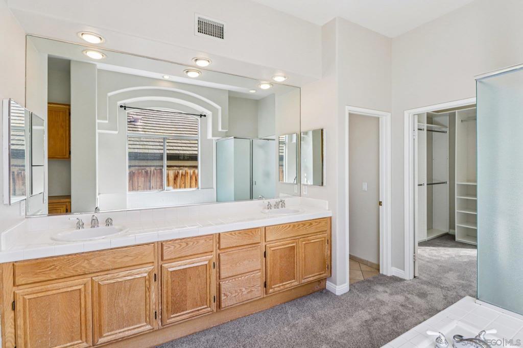 TURNKEY, MOVE IN READY. VIEW, VIEW, VIEW. Beautiful, 3 bedroom PLUS office, SINGLE STORY, great views from back yard. Cul-de-sac street, ready to move in. 3 CAR GARAGE. 3 full baths, 1, 1/2 bath. HVAC was replaced in 10/2022. Attic has been heat sealed for energy efficiency. 240 volt charging port in garage. All bedrooms have on suite bathrooms. Primary bedroom with large walk in closet with awesome professional built-ins. Second bedroom with new built in professional closet. New dishwasher. New carpet throughout. New interior paint throughout. Quiet neighborhood. Ample street parking. Very close to Casillas Elementary and Rancho Del Rey Middle School. Close to 805 freeway, close to Sharp Hospital. This beautiful home is waiting for its next owner.