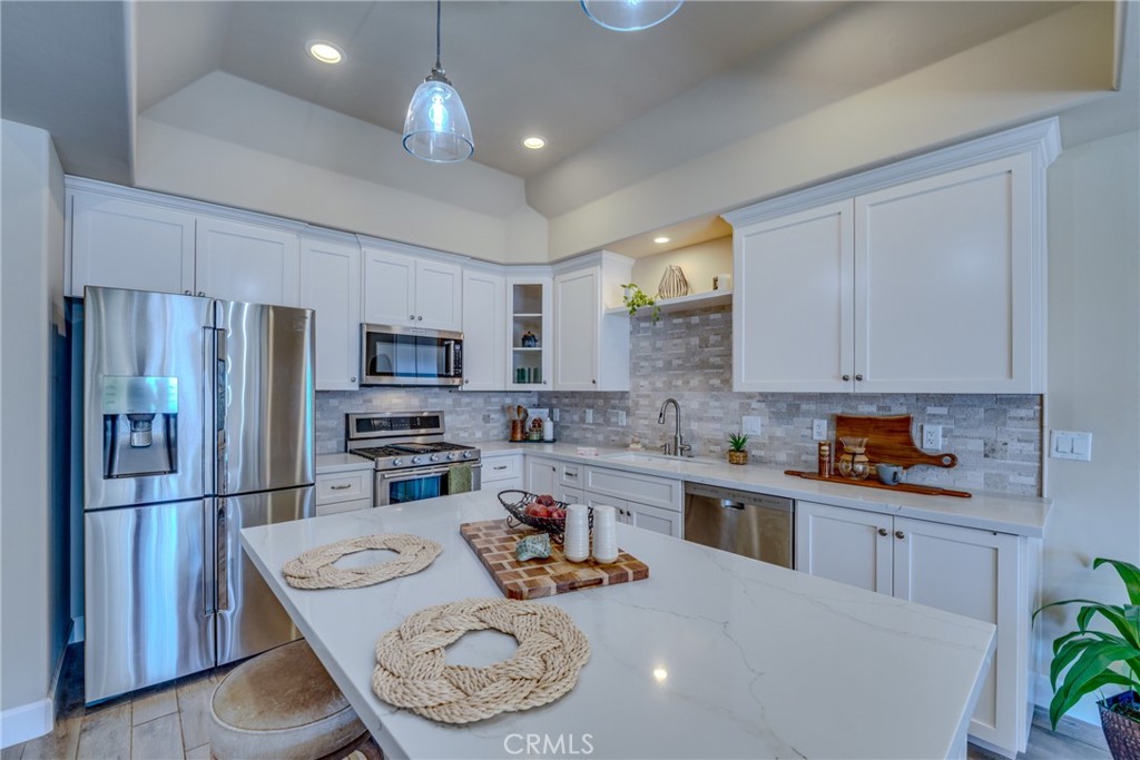 This townhome is nestled in the esteemed neighborhood of Sunset Beach Estates gated community, boasting numerous upgrades for a luxurious lifestyle. Revel in the elegance of marble like flooring and wood like tile throughout. The spacious kitchen features pristine white Quartz countertops atop a sizable eat in island, complemented by coffered ceilings and a high-end kitchen aid stainless chef's stove. Enjoy modern conveniences such as a built in microwave with hood and a cozy fireplace, while bifold exterior patio doors seamlessly blend indoor and outdoor living, offering a peak of ocean views. The upper level hosts a mini master suite and a separate powder room for guests, while the main level comprises the kitchen, dining area, and a great room that opens onto a large expansive deck. The lower level offers a master suite with a walk in closet, separate bathtub, and a walk in shower adorned with custom tile work. A private patio landscaped backyard provides a nice private retreat off the primary bedroom. Convenience meets leisure with a walking path leading to beach access at the end of the subdivision, while a large city park nearby offers further recreational opportunities. Positioned adjacent to the prestigious Cliff's Resort and Dolphin Bay Resort, this townhomes epitomizes living at its finest.