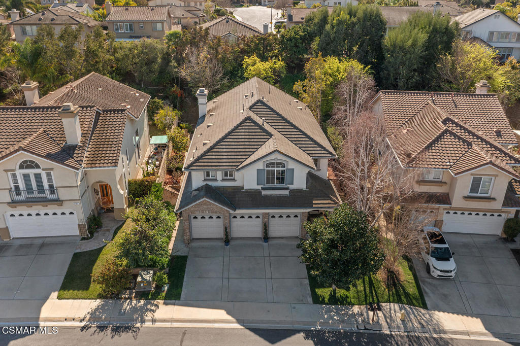 Situated on a private cul-de-sac within the 24-hour guard-gated community of Rancho Conejo, this spacious 4 bedroom, 4 bath residence offers an exceptional floor plan and incredible potential with over 3100 square feet. All four bedrooms are located upstairs, providing ideal functionality. An additional room downstairs is currently used as an office and offers flexibility for guests or additional living space.Vaulted ceilings and recessed lighting create a bright, open feel throughout the home. The kitchen features a generous center island, separate dining area, and ample cabinetry, flowing seamlessly into the main living spaces. A dedicated laundry room and direct access to a three car garage add convenience and practicality. Dual HVAC systems provide year-round comfort. The backyard offers a private outdoor setting with space to relax, entertain, or personalize to your vision. Residents enjoy access to two community pools, a clubhouse, and the privacy and security of 24-hour guard-gated living that Rancho Conejo is known for. Ideally located near parks, scenic trails, shopping, convenient freeway access, and award-winning schools within the Conejo Valley Unified School District, this home offers both lifestyle and location.