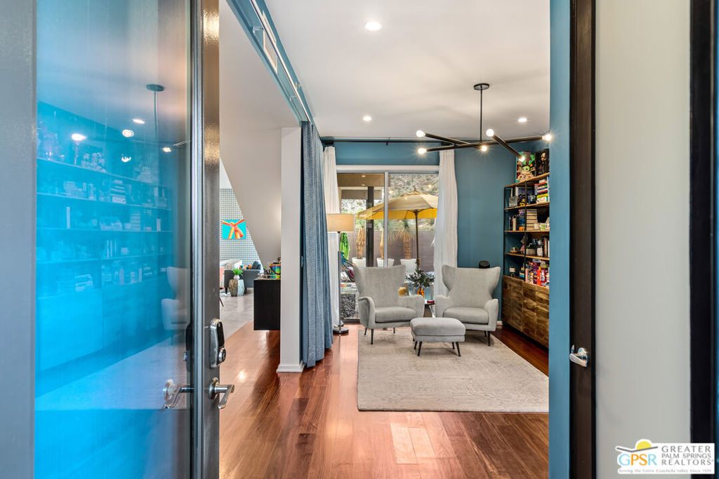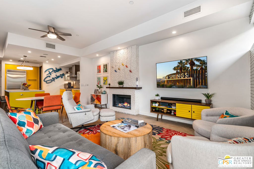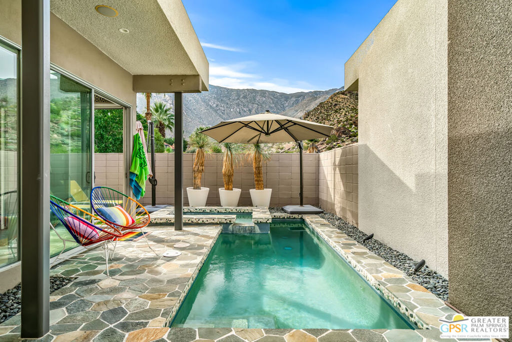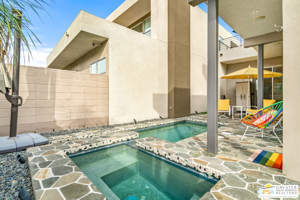 Experience the best of Palm Springs living in this stunning contemporary townhome, where mountain vistas meet modern luxury. Located in sought-after South Palm Springs, this exceptional residence offers the ultimate desert lifestyle. Step into light-filled, open-concept living where the large sliding doors frame dramatic mountain views from every angle. The seamlessly integrated living, dining, and kitchen areas create an entertainer's dream, flowing effortlessly to your private outdoor oasis where a sparkling pool and spa await...perfect for soaking in the desert sun or starlit evenings against the San Jacinto backdrop. This thoughtfully designed home features two generous bedroom suites, each with private ensuite bathrooms for ultimate privacy and comfort. A versatile office/flex space adapts to your lifestyle, whether you work remotely, pursue creative passions, or need a guest retreat. This home also features owned solar and a Tesla Powerwall 2. Make this spectacular Palm Springs property your own and start living the desert dream today!