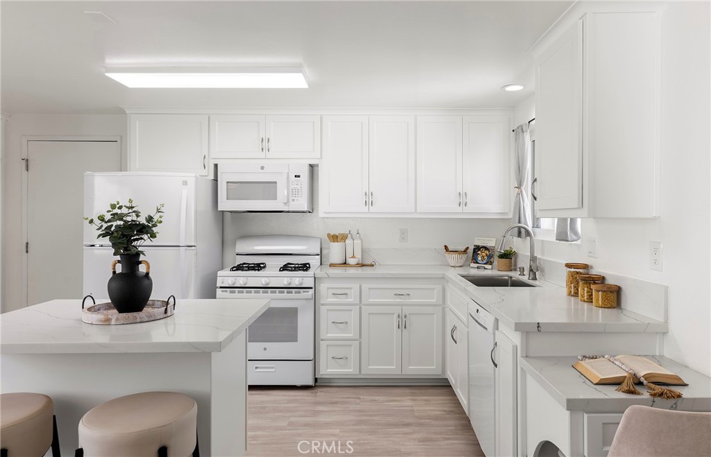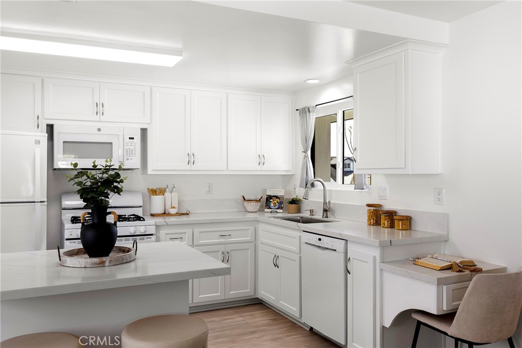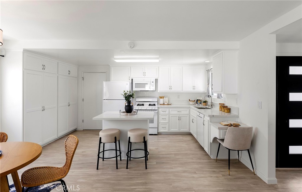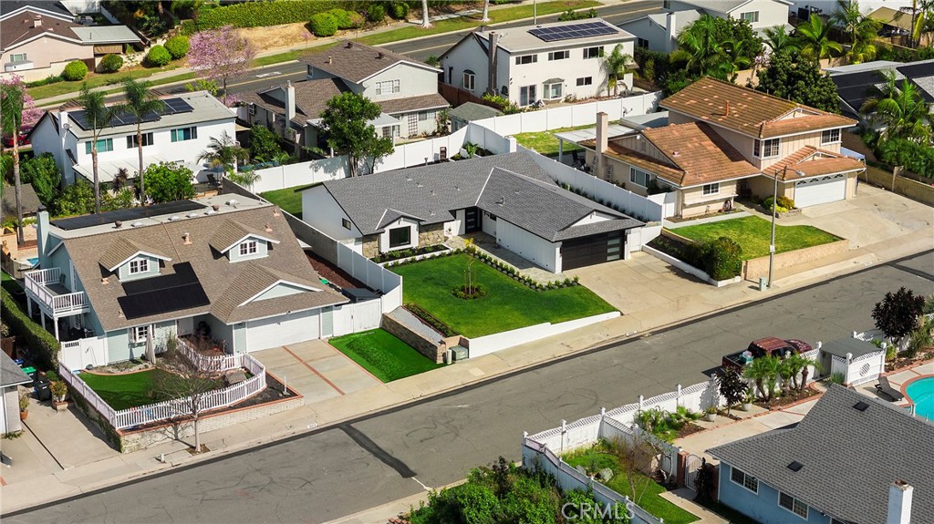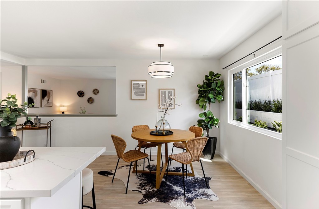 Situated in the heart of Laguna Hills with no Mello Roos or HOA, this thoughtfully updated single-level home offers an effortless lifestyle with a fresh mid-century feel and modern upgrades throughout. Upon arrival, you’ll notice that the home makes an immediate impression with freshly painted exterior, new light fixtures, updated front door and mailbox, and beautifully reimagined landscaping in the front, side, and backyard. A flagstone entry path leads to a private patio with space for dining or lounging—perfect for enjoying evening sunsets. Inside, natural light fills the open living spaces, highlighted by luxury grey wood-style laminate flooring and a spacious living room anchored by a wood-burning fireplace framed in a dramatic flagstone surround. A half-wall pass-through to the kitchen enhances the open-concept feel while preserving wall space for furnishings. Sliding doors extend the living area outdoors to a very private, expansive backyard featuring a lush lawn, fragrant tropical plantings including hibiscus, bird of paradise, star jasmine, boxwood, and lavender, along with fruit trees and an herb garden. New vinyl fencing, a block retaining wall, and a fully redesigned sprinkler system complete the outdoor transformation. The remodeled kitchen is both stylish and functional, featuring crisp white cabinetry with new doors and hardware, quartz countertops, generous pantry and linen storage, and a counter-height island with bar seating for two. The kitchen flows seamlessly into the dining area, where a new mid-century modern double-drum ceiling fixture adds a designer touch. All three bedrooms are comfortably sized and feature new glass sliding closet doors. The primary suite includes a bay window with window seat and an updated en-suite bath. Both bathrooms have been fully refreshed with marble tile, new vanities, resurfaced enclosures, and all-new fixtures. Additional upgrades include: new double-pane windows throughout, a new asphalt shingle roof, refreshed garage with automated garage door and an updated washer/dryer area with a utility sink, recent termite fumigation (2026), and a freshly painted interior. Just a short walk to award-winning schools, steps away from Knotty Pine Park, ideally located near the 5 freeway & Toll Roads, and just miles to Laguna Beach, Irvine Spectrum, shopping, and world-class restaurants, this home offers turn-key convenience and a fun lifestyle beyond!