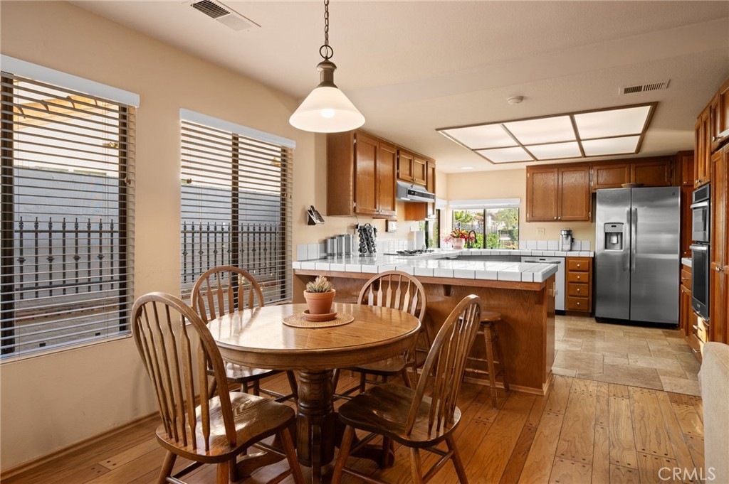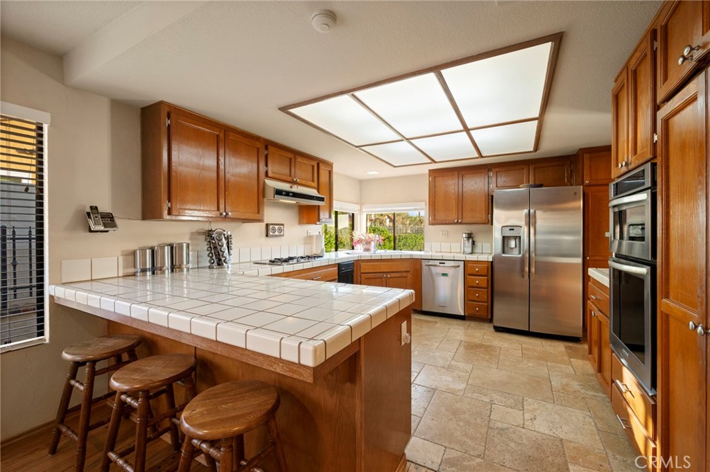 Stunning single-level home on a premium corner lot in the highly desirable Sonata community, offering breathtaking west-facing views of mountains, valleys, and Lake Hodges area with only one neighboring home. This spacious four-bedroom, two-bath residence features vaulted ceilings, abundant natural light, and expansive windows that highlight the spectacular scenery. The home offers both a formal living room and family room, each with a fireplace, creating inviting spaces for relaxing and entertaining. The dine-in kitchen includes a breakfast counter, space for a dinette table, and select updated appliances, providing a comfortable and functional layout for everyday living. The private primary suite features direct patio access, panoramic views, and an updated ensuite bathroom with new cabinetry, Silestone quartz countertops, oversized walk-in shower, and dual mirrored closets. Enjoy indoor-outdoor living under the Alumawood pergola (2022), surrounded by drought-tolerant landscaping with automated irrigation and select grassy areas for pets or play. The fully fenced yard maintains open sightlines to preserve the views, with a private park located across the street. Additional highlights include fully paid solar with an average electric bill of zero since installation, ADT security system, Ring doorbell and outdoor Cox camera, travertine flooring throughout most of the home, interior laundry room with cabinets and utility sink, three-car garage, and large attic storage with pull-down access. The Sonata HOA offers tennis and pickleball courts, picnic areas, basketball court, mini parks, and open space. Conveniently located near LR Green Elementary, San Pasqual High School, Vineyard Golf Course, Kit Carson Park, local wineries, hike and bike trails, and the San Diego Safari Park. A rare opportunity to own a private, view-filled home in one of South Escondido’s most sought-after neighborhoods.