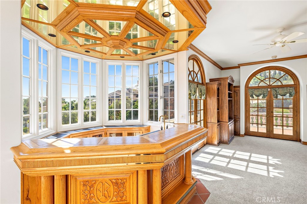 Set behind a private gate on nearly one acre, this custom-built traditional estate offers a rare opportunity to own a truly special property in one of Fullerton’s most established hillside neighborhoods. Perched on an elevated lot with sweeping surroundings, the residence reflects timeless architecture, exceptional privacy, and a sense of place that is increasingly rare to find—providing a canvas to reimagine and carry forward its next chapter. A grand covered entry with stately columns, exposed wood beam ceilings, and custom solid wood double doors opens to an impressive interior defined by soaring ceilings, expansive windows, and distinctive architectural detailing. The formal living areas showcase custom millwork, built-in cabinetry, and a beautifully crafted fireplace, while French doors open to expansive terraces that invite natural light and seamless indoor-outdoor living. The kitchen retains its original character with custom cabinetry, detailed tilework, and a functional layout ready to be thoughtfully updated. The primary suite offers a peaceful retreat, complete with its own fireplace, private balcony, dual closets, and a primary bath intentionally designed around the view. A soaking tub is positioned beside walls of windows that capture sweeping panoramic vistas extending across the surrounding landscape toward the distant coastline, offering a breathtaking setting to unwind while enjoying Disneyland fireworks displays in the evening. The thoughtfully designed layout includes multiple living areas and a spacious bonus room with direct backyard access and existing plumbing, offering flexibility for guest accommodations, extended living, or a customized gathering space. A three-car garage and recently installed HVAC system provide added comfort and functionality. The grounds reflect estate living, featuring expansive terraces, a built-in pool, pergola, mature landscaping, and outdoor areas designed to take advantage of the property’s elevated setting and natural privacy. Ideally located near the 57, 5, and 91 freeways, and just minutes from Craig Regional Park, Brea Mall, Downtown Fullerton, and Cal State Fullerton, the property offers convenient access to shopping, dining, recreation, and nearby Troy High School and private school options. With its gated entry, architectural character, expansive grounds, and enduring presence, this is a rare opportunity to restore and reimagine a truly special Fullerton legacy estate.