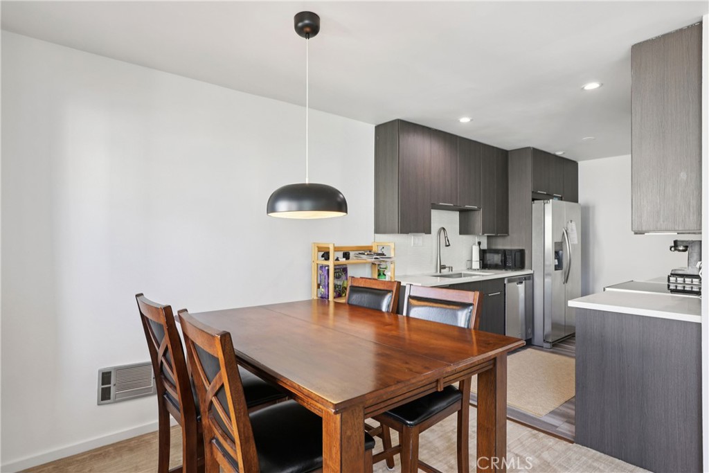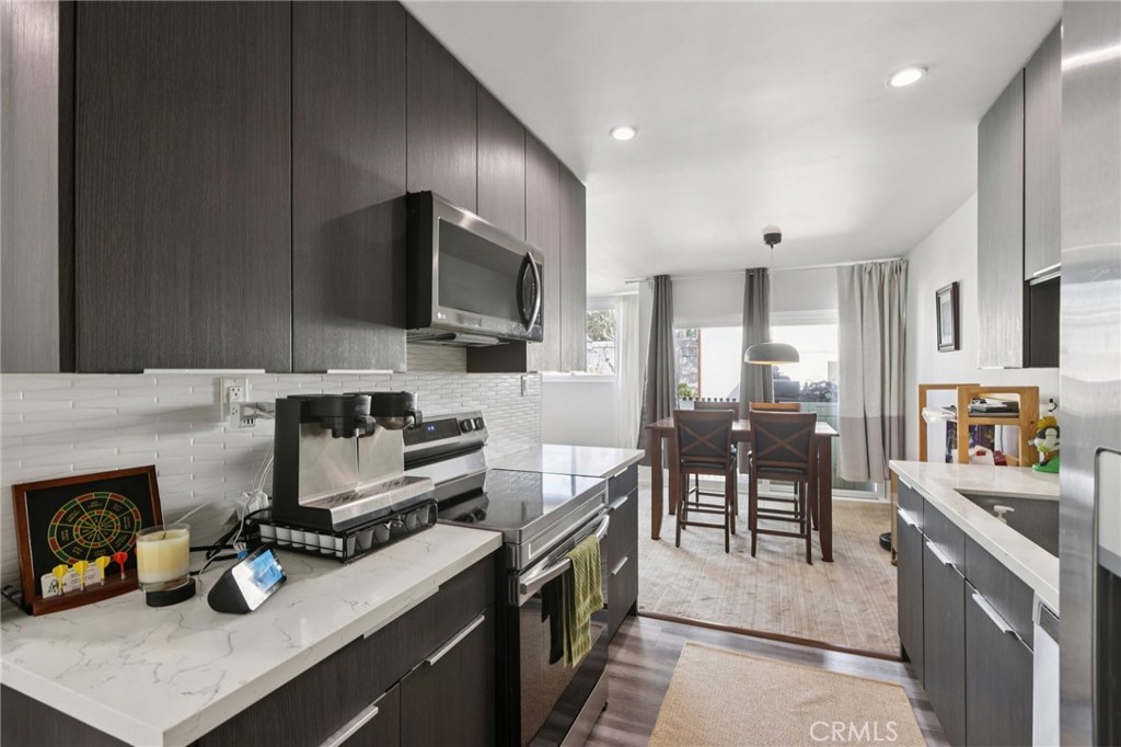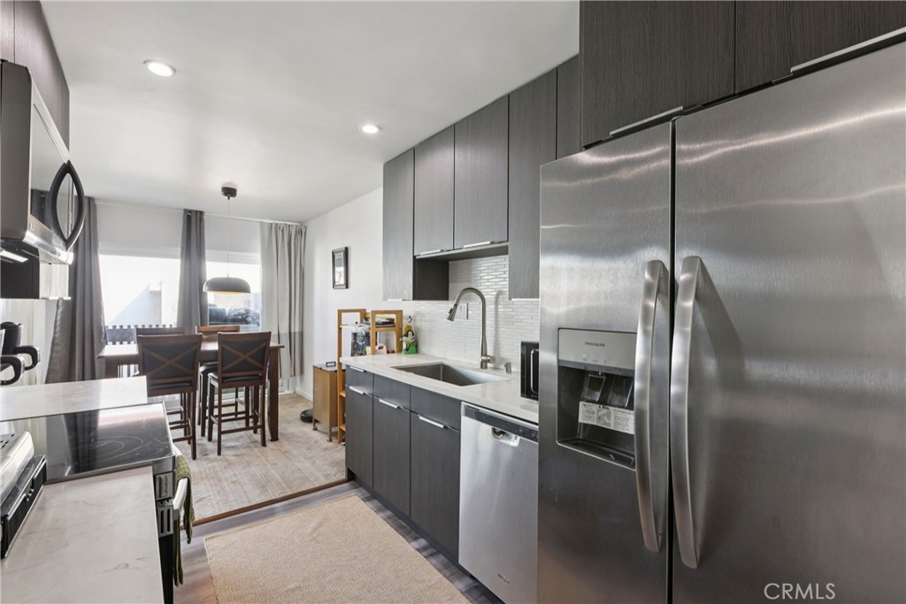 Perched at the top of The Pines in Culver City, this home might just be the quiet achiever you’ve been waiting for. Top floor? Check. Two bedrooms, two full baths? Absolutely. No shared walls—just one neighbor below? Yes, really. It’s the kind of place that feels almost too good to be true… but spoiler alert: it’s not. Inside, sunlight pours through generous windows, bouncing off sleek vinyl and carpeted floors and highlighting a fully renovated, modern aesthetic that’s equal parts polished and practical. The kitchen is dialed in with stainless steel appliances, quartz countertops, and contemporary cabinetry—ready for weeknight takeout plating or your next “I found this recipe on Instagram” moment. The living space flows effortlessly to a private balcony with treetop and courtyard views—morning coffee in the fresh air, evening wind-downs with a glass of something chilled, and just enough elevation to feel like your own little retreat above it all. The primary suite? Spacious enough for a king-sized bed (and then some), complete with a large walk-in closet and a remodeled bath featuring dual vanities and a sleek shower setup. The second bedroom and full bath offer flexibility—guest space, home office, Peloton studio, or all of the above. And then there’s the lifestyle factor. Living at The Pines means access to a sparkling pool, sauna, clubhouse, conference room, rec room, and on-site management—all within a gated community. Two tandem parking spaces in the garage make coming and going easy, and the central location near the 405 and 90 means the entire Westside is basically at your fingertips. Beach day? Dinner in Marina del Rey? Studios, shopping, restaurants? All within reach. Fully renovated. Top floor. No shared walls. Prime Culver City location plus one of the few units with added air conditioning. Opportunities like this tend to disappear quietly… but this one? It deserves a little noise. Don’t sleep on it.
