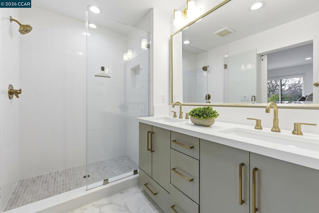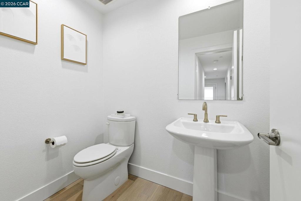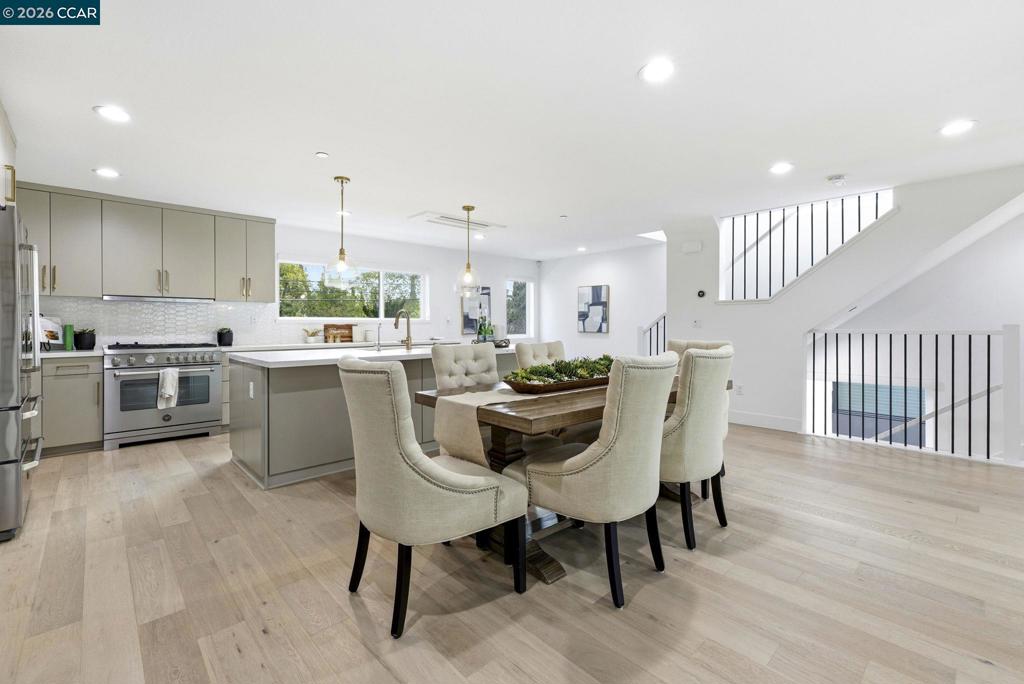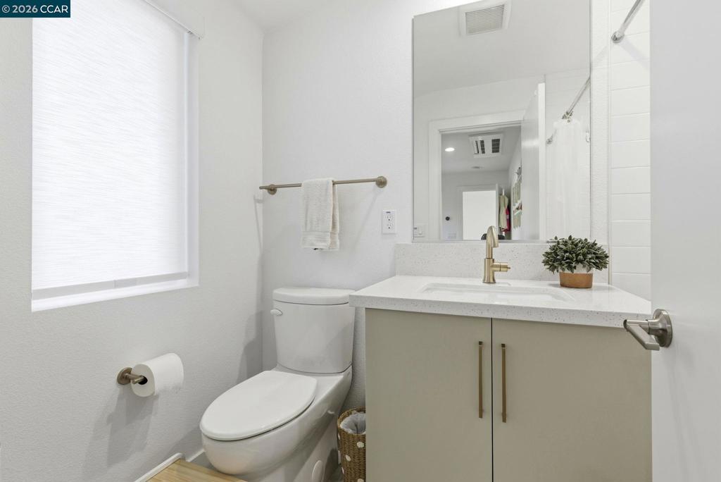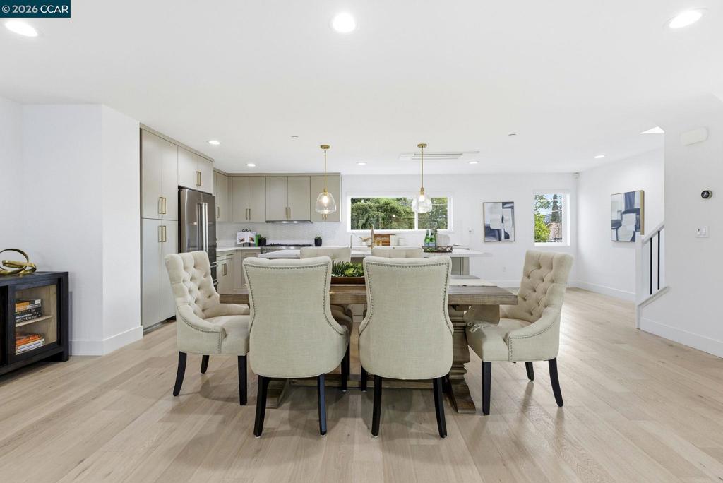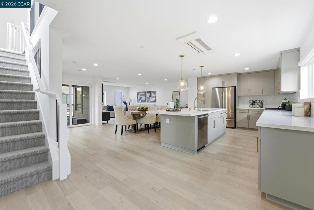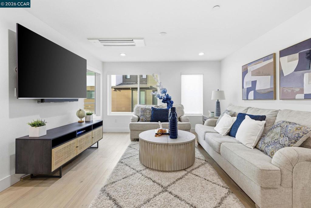 Built in 2021, this townhouse-style condo offers energy-efficient living with owned solar, full bedroom suite on the main level & walkability to BART, shopping, dining & Larkey Park. The main living areas are open & light-filled, featuring wide-plank flooring, recessed lighting & expansive windows that create a bright, modern feel. The chef’s kitchen anchors the space with sleek slab cabinetry, brushed brass hardware, quartz counters & geometric tile backsplash. A generous island offers seating & prep space, complemented by stainless steel appliances & a 36-inch Bertazzoni gas range. The kitchen flows seamlessly into the dining & living areas, creating an ideal open-concept great-room layout for entertaining. A covered balcony extends the living space outdoors. Upstairs, the primary suite offers a serene retreat with oversized windows & spa-inspired bath featuring dual sinks, quartz counters, brass fixtures & glass-enclosed shower with designer tile. The 3rd bedroom is bright & versatile, also complete with its own beautifully appointed full bath. All bedrooms are ensuite, complemented by an attached two-car garage with EV charger. Served by top rated schools & quick access to major freeways & transit corridors. Designed for low-maintenance, modern living.