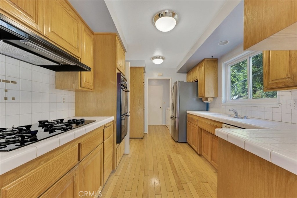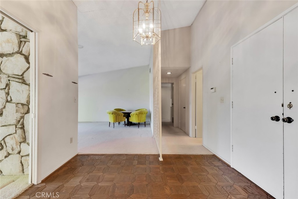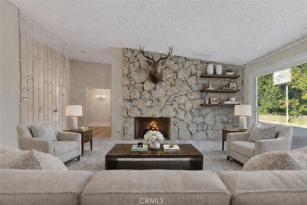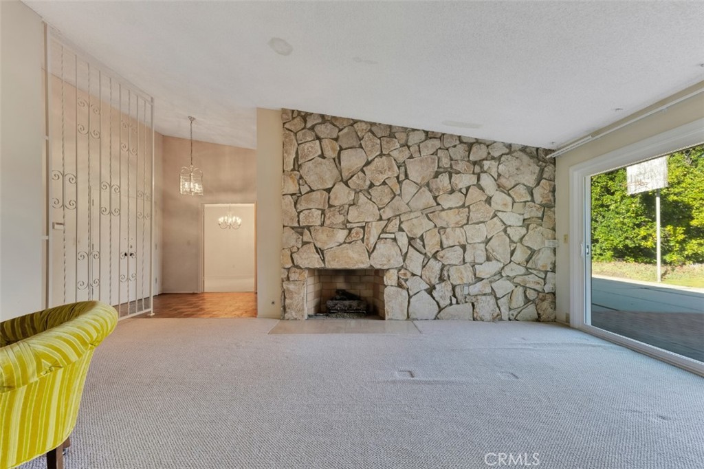 Offered for the first time since it was built in 1966 and lovingly maintained by the original owner. Designed by renowned architect Charles DuBois, this spacious mid-century residence is nestled within a picturesque hillside community of Woodland Hills and is located within the boundaries of highly rated and award-winning schools including Lockhurst Dr. Elementary, Hale Charter Academy, and El Camino Real High School. With 4 bedrooms, 2.5 bathrooms, and 2,445 square feet of living space on a generous lot of just over 11,000 square feet, the home offers attractive curb appeal and a thoughtfully designed floorplan showcasing preserved classic mid-century elements and timeless architectural character. A double door entry opens to a welcoming foyer that flows into the formal living room and adjacent family room, both highlighted by cathedral ceilings, sliding glass doors to the backyard, and an impressive floor-to-ceiling, wall-to-wall natural stone fireplace. The kitchen features a breakfast nook with its own sliding glass door to the yard, a built-in gas range, wall oven, and a dedicated laundry room with direct access to the two-car attached garage, which also provides access to the north side yard. A formal dining room sits just off the kitchen and connects seamlessly back to the foyer, while a centrally located powder bath adds convenience for guests. All four bedrooms are situated along a private hall, each generously sized. The three secondary bedrooms share a full hall bath with dual sink vanity, while the primary suite offers cathedral ceilings, a fourth sliding glass door to the backyard, a walk-in closet plus an additional closet. A dedicated vanity area leads to the en-suite bath complete with dual sinks, separate tub and shower, and direct access to the south side yard. The expansive backyard showcases hillside views with mature fruit trees and offers incredible potential to create custom hardscape seating areas, possibly a pool, as well as a generous lawn space for recreation or entertaining. Move-in-ready with great bones, abundant natural light, and expansive living spaces, this home presents an outstanding opportunity to update and customize while enjoying close proximity to shopping and dining along Ventura Boulevard, premier retail and entertainment at Westfield Topanga and The Village at Westfield Topanga, scenic hiking trails in Topanga State Park, and convenient access to the 101 for an easy commute.