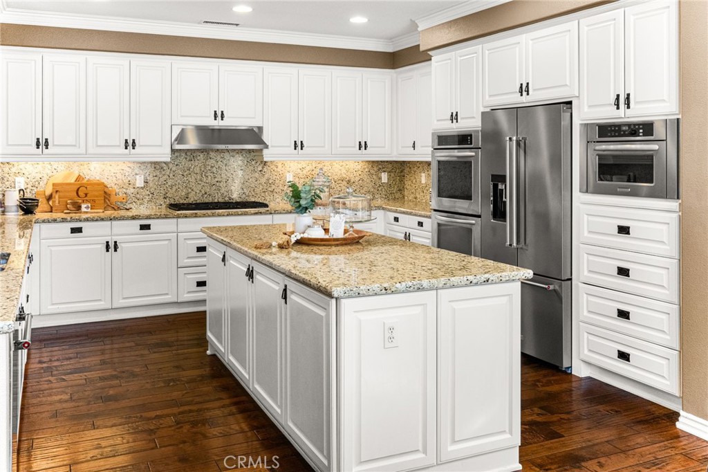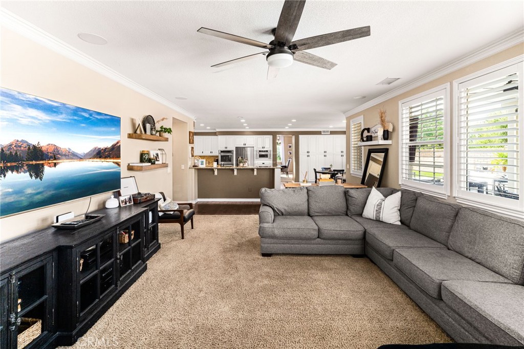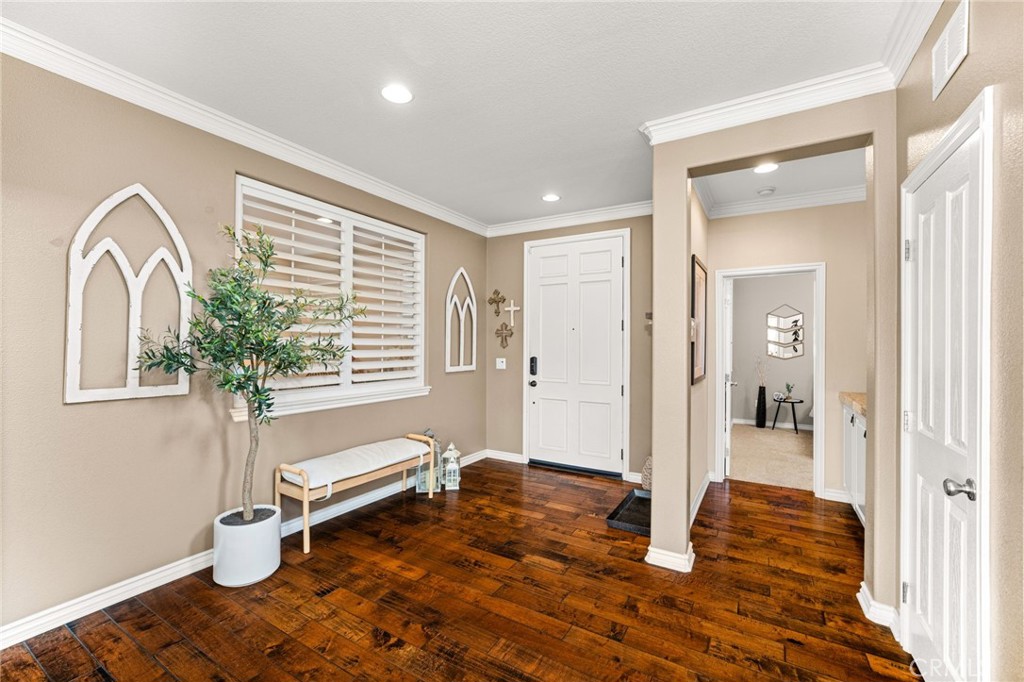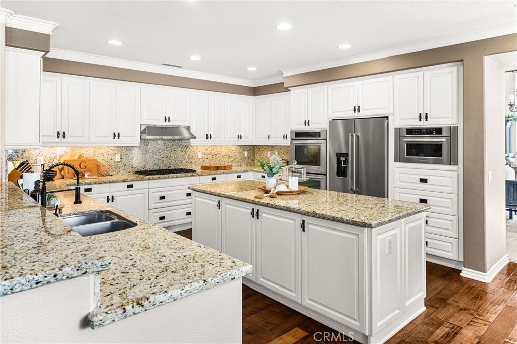 Largest Model in Sierra Heights this Luxury Pool Home with a 4-Car Garage plus Solar. Welcome to this stunning 5 bedroom, 4.5 bathroom home located in the highly desirable Sierra Heights community. Built in 2010 by Standard Pacific Builders, this spacious residence features ebony-finished hardwood floors, soaring cathedral ceilings, and an open-concept layout perfect for entertaining.The gourmet kitchen is equipped with stainless steel appliances, a 5-burner stove, double oven, built-in microwave, dishwasher, and extensive cabinetry throughout. Downstairs includes a large office/den/playroom and a private bedroom with full bath ideal for guests or in-laws. Upstairs, the primary suite offers dual walk-in closets, jacuzzi tub, walk-in shower, dual vanities, and elegant wall moldings. Additional features include a loft (easily converted to a 6th bedroom), 3 more bedrooms, 2 full baths, and an oversized laundry room with utility sink. Enjoy indoor/outdoor living with a fully upgraded backyard featuring a newer pool with waterslide, spa, built-in BBQ, Teppanyaki grill, refrigerator, firepit, covered patio, backyard speakers, and a putting green.Bonus features: 220V in garages, Solar, RV access/parking, 4-car tandem garage, surround sound wiring, low taxes, and convenient access to the 91 Freeway, Tyler Mall, restaurants, Kaiser Hospital, and Metrolink