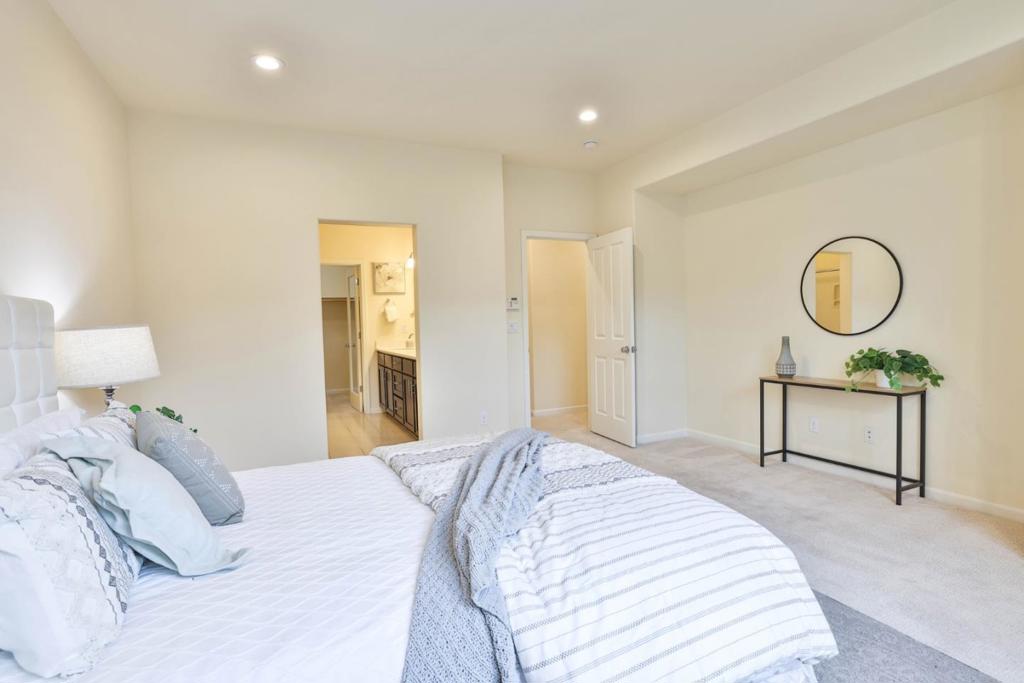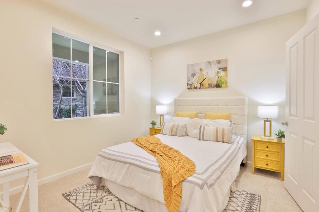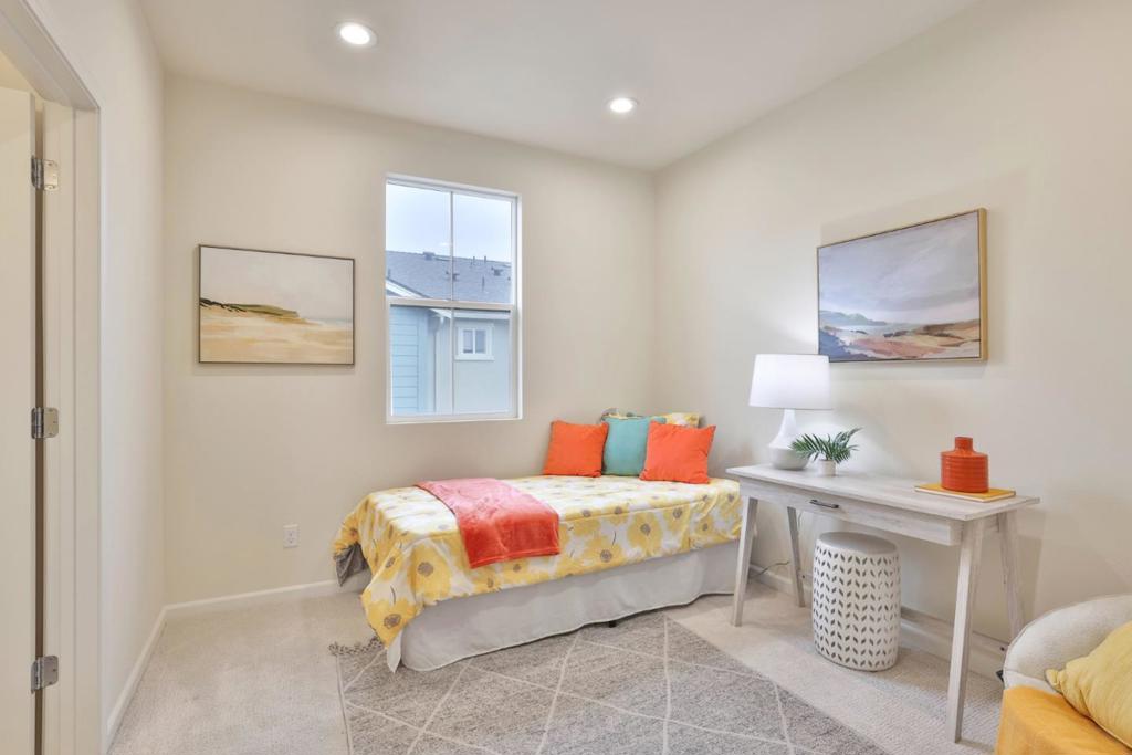 Welcome to this stunning tri-level home in the highly sought-after Coyote Creek community in the heart of Milpitas! Offering approximately 1,788 sq ft of thoughtfully designed living space, this home features three bedrooms with private full baths, perfect for modern living. The first-floor bedroom is ideal for guests or multi-generational living, while the third-floor bedrooms provide added privacy. The second floor also features a convenient half bath for guests. The floor plan includes a spacious living room, separate den/office, & a large kitchen with Stainless Steel appliances, island, quartz countertops, and ample cabinetry. Step out onto the large private balcony, perfect for relaxing or entertaining. Freshly interior paint, hardwood flooring in main living areas, carpeted in bedrooms, recessed lighting, and central heat & AC. In-unit laundry included. Attached two-car garage features an EV charger, tankless water heater, and epoxy flooring. Community amenities include a heated pool (during operating season), gym, recreation area, and rentable community room for parties. Pet-friendly neighborhood with plenty of walking paths and just steps to Coyote Creek Trail. Adjacent to Cerano Park, McCarthy Ranch, major tech companies, shopping, dining, and easy access to 880 & 237