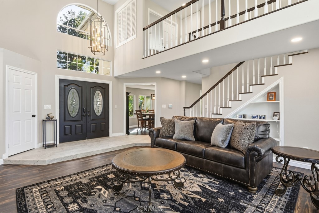 A Rare Dream Home and once in a lifetime opportunity. Nestled in the sought-after Devore Heights neighborhood, the 2.4 acre property features panoramic views of the San Gabriel Mountains to the west. Perfect for entertaining, you and your friends and family can enjoy those panoramic views from one of 2 large patios. Only 20 minutes from Victoria Gardens, you will feel a world away from the hustle and bustle of the city below. Upon entering, a grand entrance cathedral picture window welcomes you and showcases the beautiful nature surrounding the home. The modern interior design, with approximately 3,263 sq. ft. of living area, features 4 bedrooms, an office/den (could be converted into a 5th bedroom), and 3.5 baths. The open concept dining room and living room open to the huge remodeled kitchen of a designer home. Featuring a custom island with 36in Jenn-aire gas range, walk-in pantry, farmhouse sink, Lusso Quartz countertops, soft-close drawers and cabinets, breakfast nook with a view, and pendant lighting - perfect for any home chef. Go upstairs to the owner's suite where a spacious bedroom invites you to relax in an ensuite with fireplace. The luxury bathroom has a jetted tub and dual sinks, and the walk-in closet will accommodate anyone's treasured collection or wardrobe. A highlight of the home is the large 4-car garage with smart garage openers that serves as a showcase for anyone passionate about cars. The garage and exterior have space for a large collection with RV parking and an electric security gate. The garage is also prewired for a 220V electric vehicle charger. The home was renovated with high quality upgrades just 5 years ago; bathrooms, kitchen, interior paint, flooring, new HVAC systems for the main living area and owner's suite, water heaters, lighting, and roof maintenance completed for peace of mind and ease. This cherished home is beautifully updated and maintained. This is a prime location with easy access to freeways and conveniently located near shopping while still offering the privacy of an estate. Nature enthusiasts will appreciate frequent sightings of a variety of local wildlife. Schedule a private showing today because the pictures do not capture the full beauty of the sunset views or the smell of fresh mountain air.