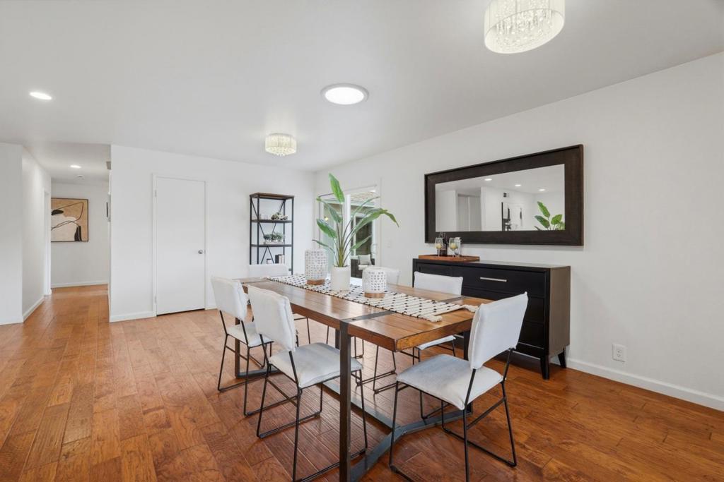 Wow! Move right into this beautiful 5 bedroom, 2.5 bathroom open floor plan home. Plenty of room for guests, work, hobbies, or creative spaces. Enjoy a central West San Jose location close to many Silicon Valley technology employers. Unwind in a bright home filled with natural light from sun tunnels, sliding doors, and dual pane windows, complemented by recessed lighting that highlights gleaming engineered wood floors. The stylish kitchen features tile floors, smooth-surface countertops, and stainless steel appliances, while updated bathrooms showcase tile and glass shower enclosures. Cozy brick fireplace and central heat and air-conditioning provide year-round comfort. Outdoor living includes fresh backyard sod for play, elegant paver patios for entertaining, and a serene low-maintenance front rock garden that adds curb appeal. Attached 2-car garage with interior access offers convenience and storage. Stroll to the neighborhood Westgate Cabana Club for seasonal pool enjoyment. Prime location near Baker Elementary, Moreland Middle, Prospect High School, major expressways, shopping, dining, and more!