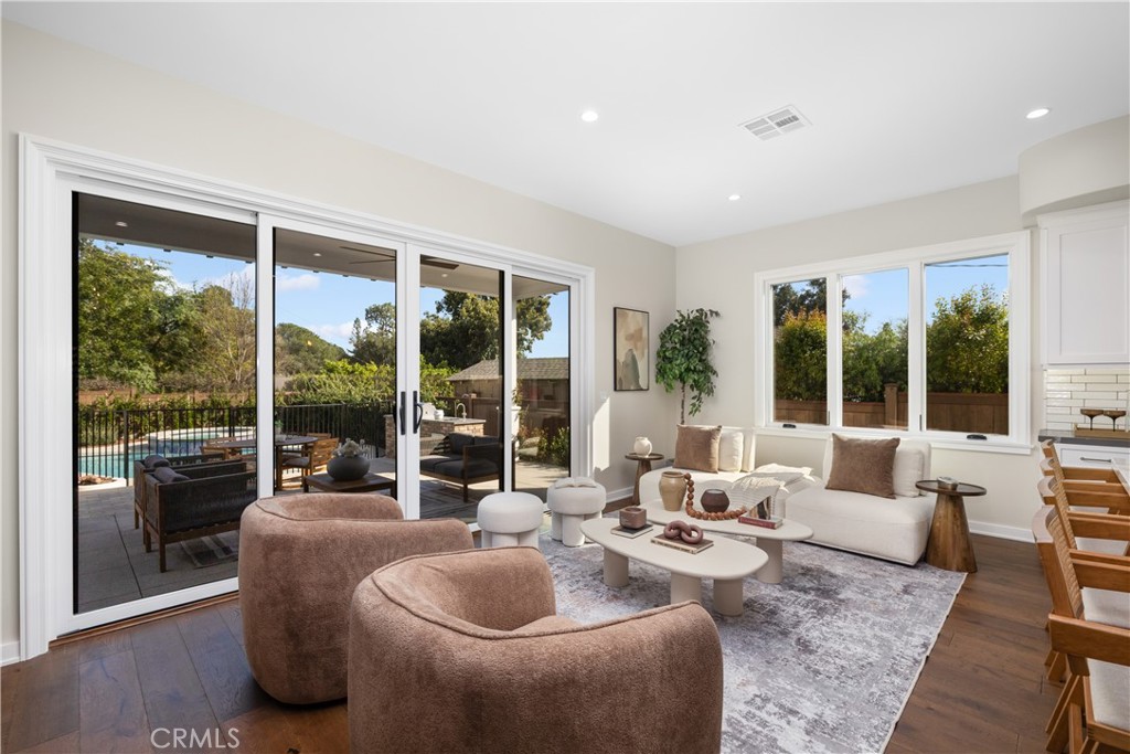 Completely rebuilt from the ground up, this beautifully renovated custom residence offers the feel and quality of brand-new construction in one of Sierra Madre’s most desirable foothill locations. Every detail has been thoughtfully redesigned with permits, including new plumbing, electrical, roof, HVAC system, windows, interior walls, flooring, kitchen, and bathrooms, truly a turnkey property with no detail overlooked. Offering approximately 2,348 square feet of total living space, the main home features 3 spacious bedrooms and 3.5 bathrooms, all designed with comfort and modern living in mind. Each bedroom includes custom built-in closet cabinetry, while the luxurious primary suite showcases a beautifully appointed bathroom and custom-designed closets. The open-concept layout seamlessly connects the kitchen, dining, and family room, creating an ideal space for everyday living and entertaining. The family room opens to a covered patio, creating a true indoor-outdoor experience overlooking the newly built pool and spa. The chef’s kitchen is equipped with premium Thermador appliances, custom cabinetry, a large center island, and a generous walk-in pantry. Behind the garage, a separate 165 sq ft bonus room/pool house with a full bathroom offers flexible use as a fourth bedroom, office, gym, or media room, ideal for guests or a private retreat. The garage is already fully plumbed with kitchen and laundry connections in place and sewer lines installed, offering excellent potential for future ADU conversion. Located near Sierra Madre’s charming downtown, hiking trails, and award-winning schools, this is a rare opportunity to own a like-new, fully renovated home in one of the area’s most sought-after neighborhoods.