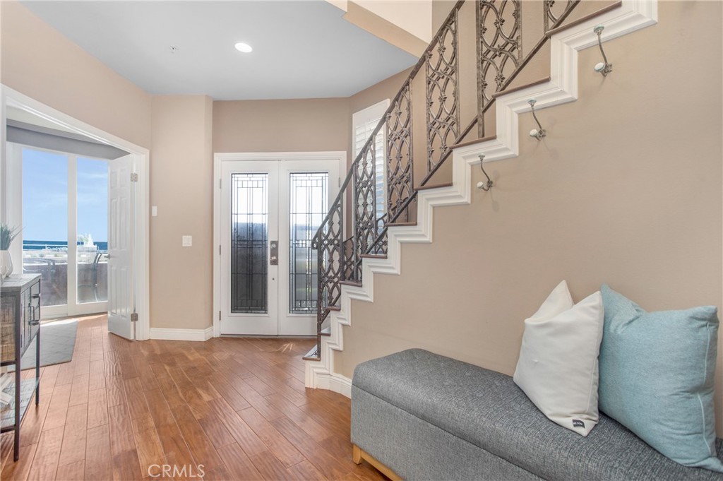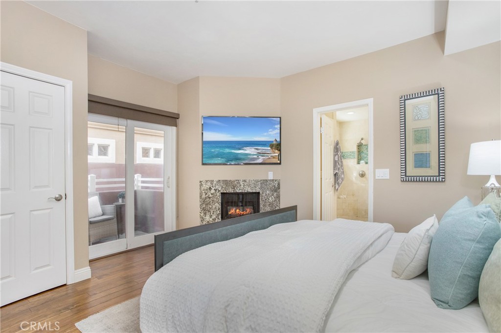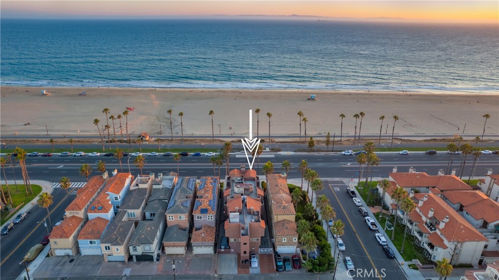 RARE coastal opportunity with unobstructed ocean views just steps from the sand! This 2 bedroom, 2.5 bathroom condo offers the ultimate beach lifestyle in an unbeatable location. Entry level features a spacious primary suite with walk-in shower, dual sinks, vanity, and walk-in closet, plus a second ensuite bedroom with tub/shower combo and private ocean-view balcony. Upstairs, the light-filled living area flows seamlessly from kitchen to dining to living room — perfect for entertaining or cozy nights by the fireplace. Enjoy a wet bar with wine fridge, solid wood flooring, and direct access to a balcony and private rooftop sundeck with stunning sunset views. The kitchen features stainless steel appliances, granite countertops, ample cabinetry, and a walk-in pantry/utility closet with a washer and dryer. Dual-pane windows are installed throughout for efficiency and quiet. Secure gated access includes a one-car garage, one assigned space, and private guest parking. Located directly across from beach access and within walking distance to the Huntington Beach Pier, Pacific City, and downtown dining and entertainment. An ideal opportunity for a primary residence, vacation home, or investment.