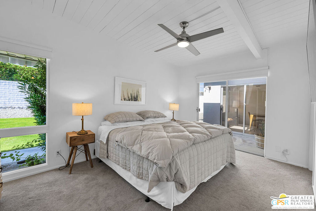 Unlock the potential of this expanded mid-century modern Meiselman home in the iconic Racquet Club Estates of Palm Springs. Set on an expansive 1/4-acre lot, this architectural gem offers the rare opportunity to restore, redesign, or fully reimagine a true piece of desert modern history. Spanning approximately 1,800 square feet, the home features a dramatic south-facing wall of glass that floods the living room with natural light and frames views of the kidney-shaped pool and mature palms beyond. A classic fireplace anchors the space, preserving the home's authentic mid-century character. The primary suite retains its vintage tiled bath and walk-in closet, while two additional bedrooms provide generous accommodations for guests or creative flex space. An expanded great room with open kitchen layout offers tremendous upside the perfect canvas to create a show-stopping modern desert retreat. Outside, the oversized lot delivers privacy, scale, and room to elevate the poolside experience into a true resort setting. Mature palms enhance the serene ambiance and underscore the property's timeless Palm Springs appeal. Adding significant value, the sellers have already invested $25,000 in custom architectural plans for a full remodel included in the sale. Some upgrades done; copper plumbing, HVAC system, pool heater, and pool resurfaced in 2022. Whether you're a mid-century purist, design visionary, or savvy investor, this is a great opportunity to create something exceptional in one of Palm Springs' most celebrated neighborhoods.