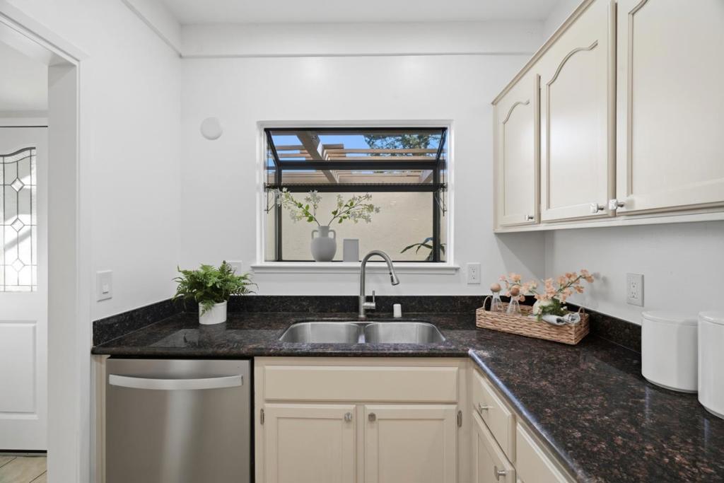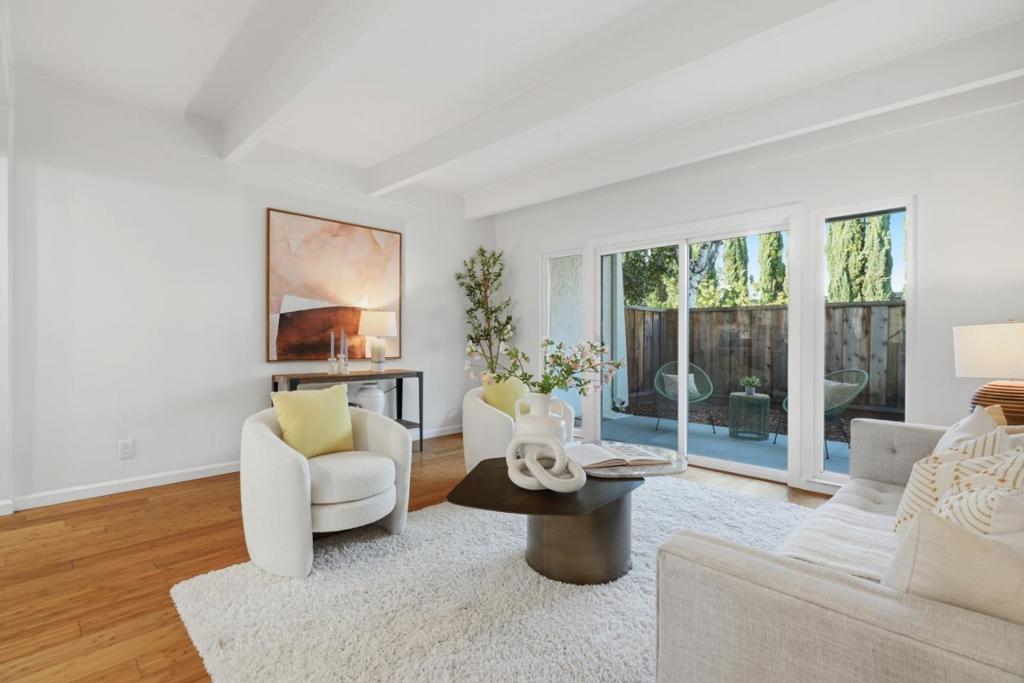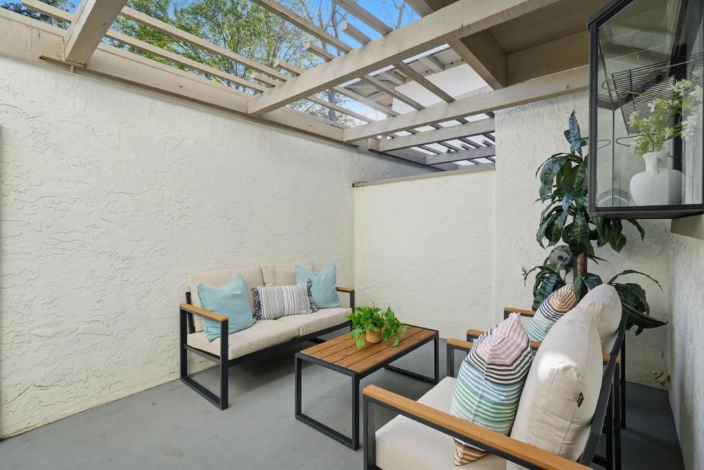 Stunning townhome located in convenient location with academically distinguished Cupertino school Monta Vista High! Private gated front patio welcomes you to the inviting and thoughtfully designed floor plan, seamlessly connecting the kitchen, dining area and living room for modern everyday living, social gathering and guest entertaining. Cheery kitchen is complete with timeless stainless steel appliances, gas stove, granite countertops, garden window, and plenty of cabinetry for storage. Spacious living room is accented with a decorative beam ceiling and features an attractive sliding glass door to allow in plentiful natural light, and leads to the back patio creating a perfect space to relax, study or play. Primary bedroom with walk-in closet and balcony. Outstanding amenities include recessed ceiling lightings, indoor laundry, well-proportioned secondary bedroom with ample closet space. Parking includes a one car garage and 2 additional assigned parking spaces in front of the unit. Convenient location to local parks, shopping, dinning, groceries, Apple Park, De Anza College, hiking trails and easy access to major commute routes. Community includes a gated swimming pool, tennis court, children play area, and clubhouse. HOA fee covers water, garbage, amenities, and common areas.