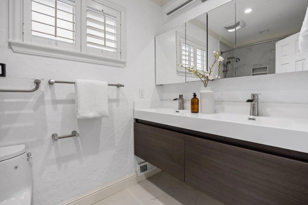 Sophistication meets functionality in this beautifully maintained home featuring two primary suites and 2.5 baths, ideally located in a highly desirable community. The open floor plan with vaulted ceilings is filled with natural light and enhanced by engineered wood flooring, a marble breakfast nook, a stylish barn door, a gas-burning fireplace, a new garage door, and a freshly painted exterior. Upstairs, both primary suites offer vaulted ceilings, ceiling fans, private en-suite baths, and spacious walk-in closets, providing comfort and privacy. The remodeled kitchen features high-end appliances, a garden window, and sliding glass doors opening to a serene backyard retreat with a new wood deck and beautifully maintained Japanese Zen inspired landscaping - perfect for relaxing or entertaining. Minutes from downtown, yet steps from scenic trails, and expansive parkland, the location feels serene and verdant. Nearby golf courses and recreational amenities enhance the lifestyle appeal, while quick access to Highways 280 and 101 ensures effortless connectivity throughout the Bay Area.