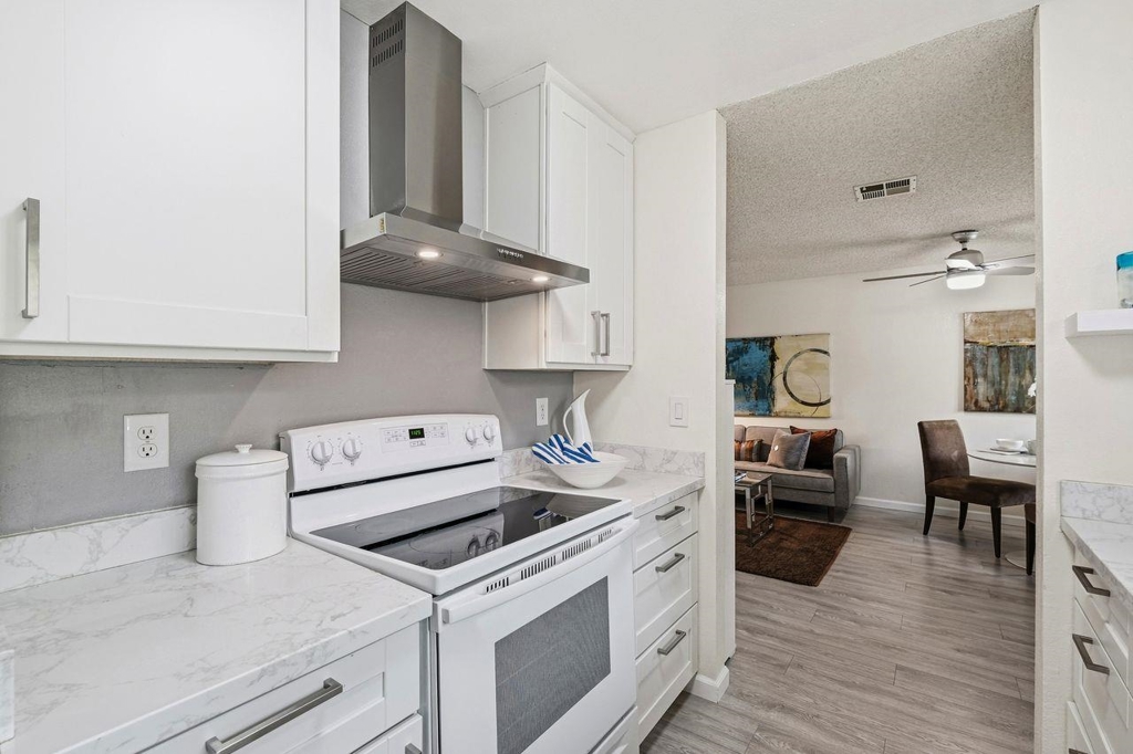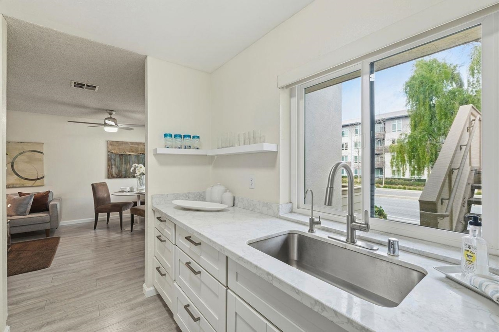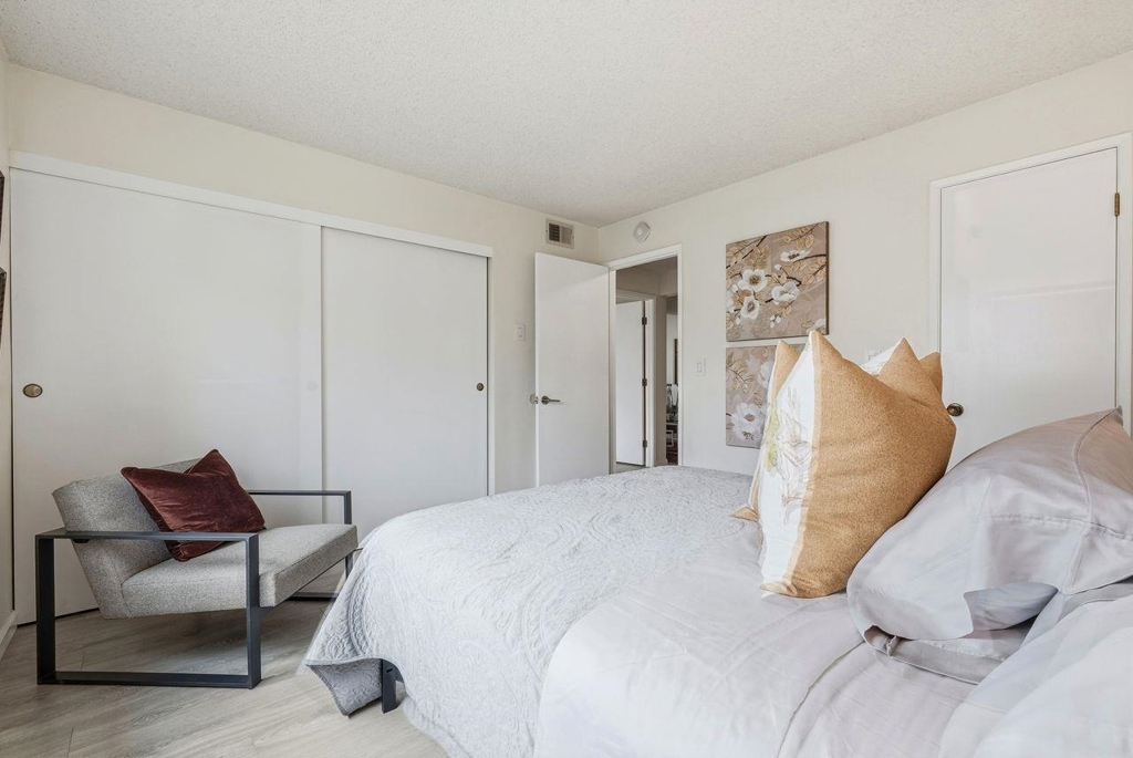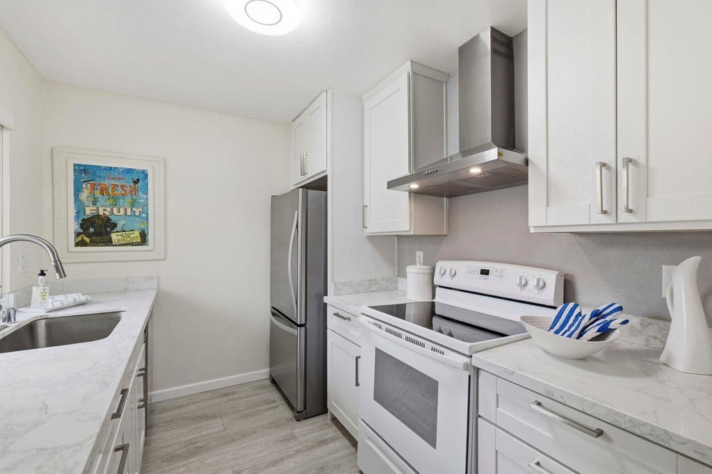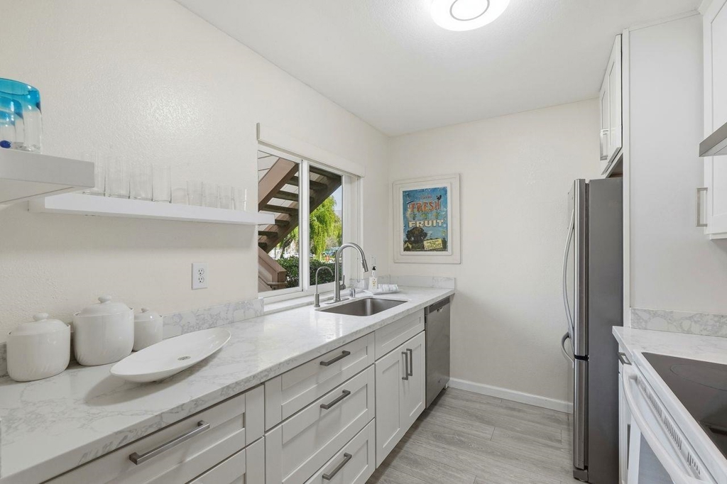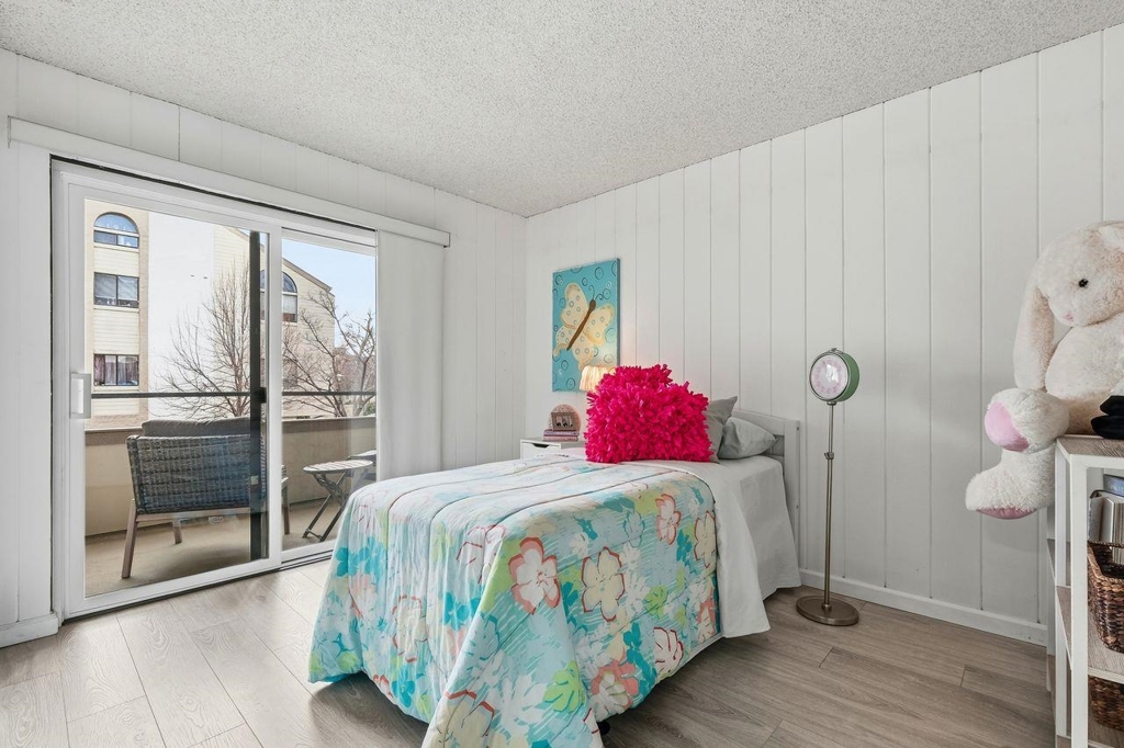 Approximately 732 square feet of thoughtfully designed living space awaits in this condominium. The unit features 2 bedrooms & 1 bath, offering versatile accommodations. The home's beautiful layout is enhanced by abundant natural light, which floods the interior through the large windows. Laminate flooring lends a warm, inviting ambiance throughout. The primary bedroom provides generous closet space, complemented by a neutral color palette & bright lighting. The bathroom features ample vanity space & a neutral decor that promotes a relaxing atmosphere. The kitchen is bright, spacious & functional, w/ abundant countertops for meal preparation. Stepping outside, you'll find lush landscaping & well-maintained exterior grounds. The front patio & rear balcony provide the perfect spot to enjoy outdoor seating. The covered entrance & landscaped grounds contribute to the home's curb appeal & ideal location. A private garage w/ additional storage and EV charger capability enhances practicality. Residents can also take advantage of the inviting pool, offering a refreshing retreat. This home presents an ideal living environment w/ its thoughtful design & desirable amenities. The neutral tones & abundant natural light create a welcoming home to enjoy! OPEN HOUSES SAT-SUN, 2/21-2/22, 1-3 PM