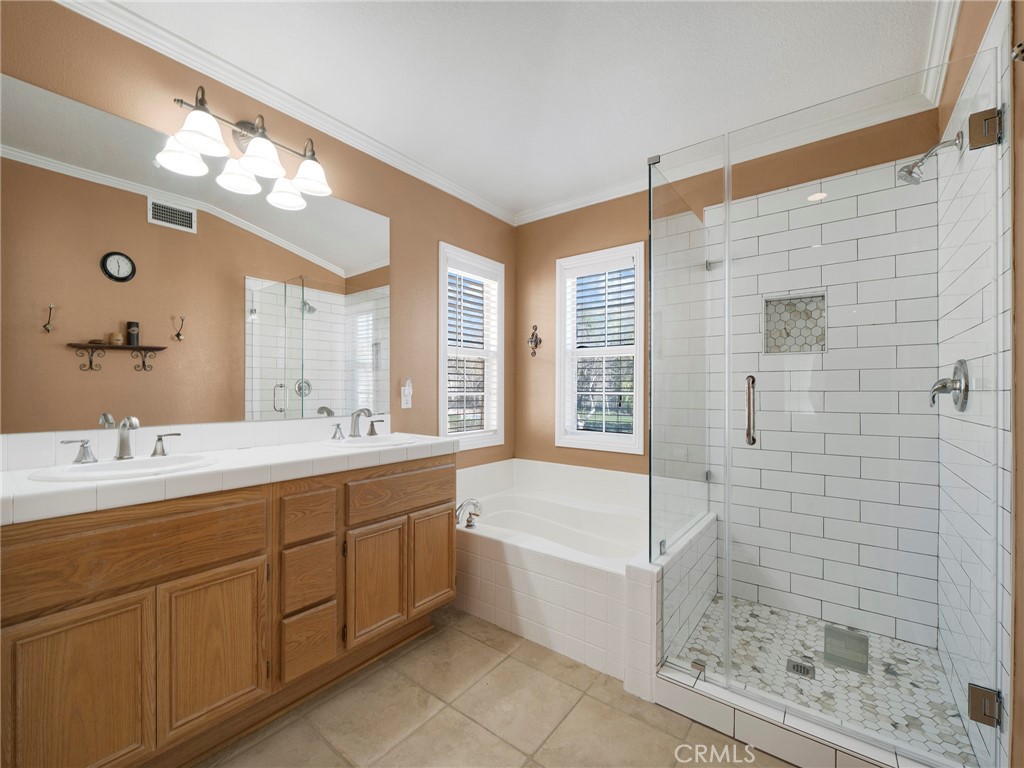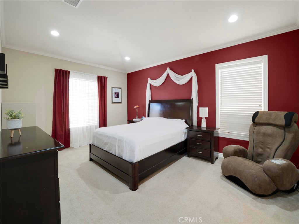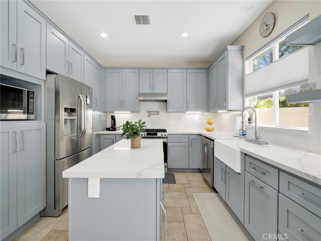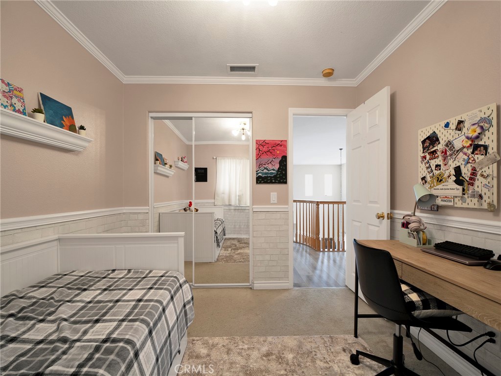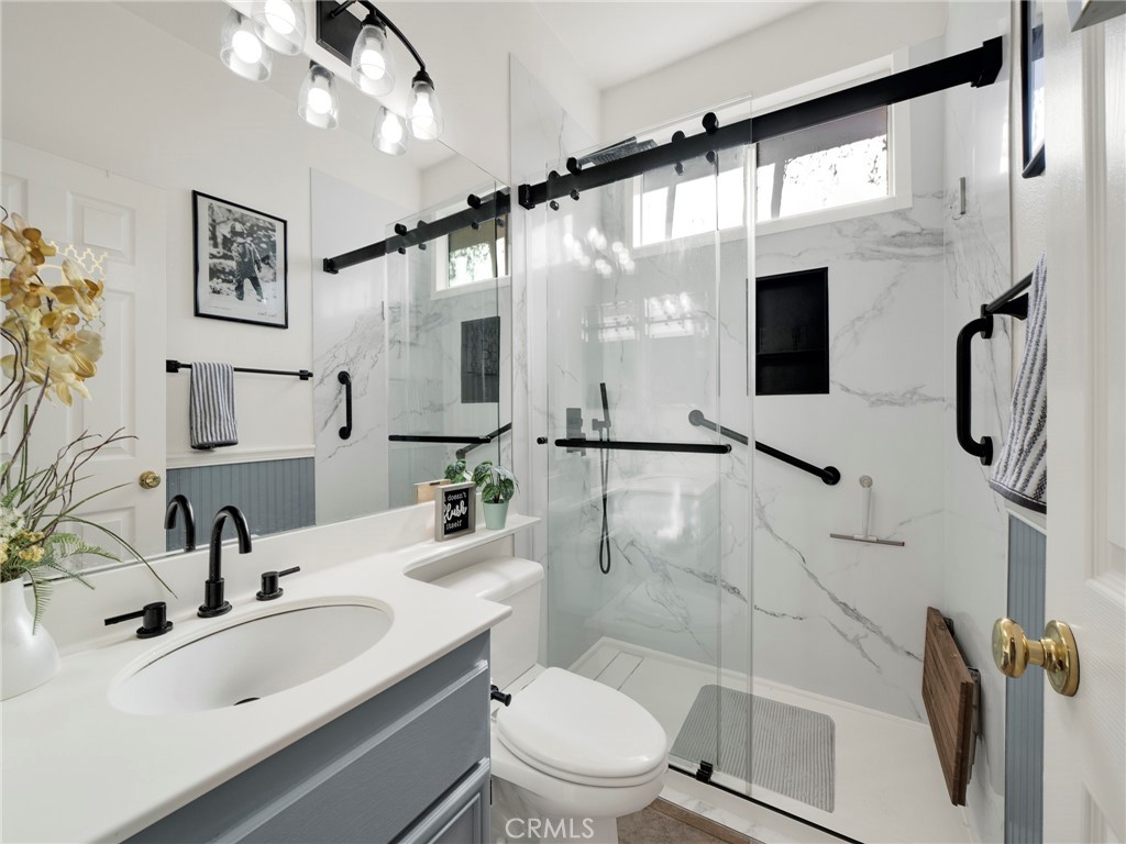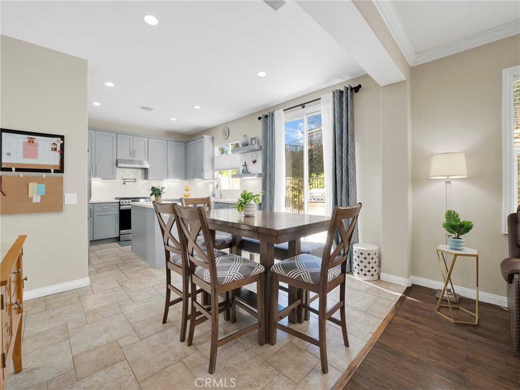 Step into this beautifully updated 4-bedroom, 3-bath home in Santa Clarita, where comfort and style come together effortlessly. The formal living room welcomes you with soaring ceilings and abundant natural light, creating an inviting space that flows seamlessly into the dining area. A versatile downstairs room, ideal for a home office or guest space is complemented by a remodeled bathroom with walk-in shower, offering exceptional flexibility and convenience. The heart of the home is the remodeled kitchen, featuring quartz countertops, a center island with built-in wine refrigerator, and an open connection to the cozy family room, perfect for everyday living and entertaining. Upstairs, all four bedrooms provide privacy and comfort, including a spacious primary suite with an en-suite bathroom featuring a separate soaking tub and walk-in shower. Enjoy the private backyard designed for both relaxation and fun, complete with a putting green and space to unwind or host gatherings. Additional highlights include solar panels for energy efficiency and long-term savings. Community amenities such as a pool, spa, and park complete the lifestyle in this desirable neighborhood.