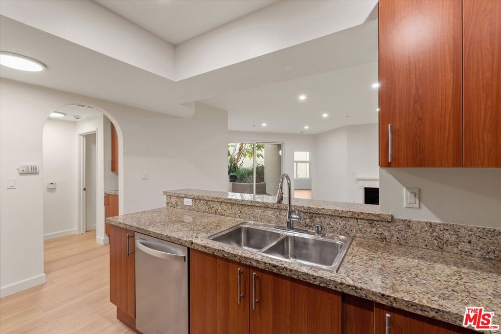 Welcome home! This bright 2-bedroom, 2-bath condo offers a generous and functional layout designed for comfortable everyday living. The open living area features a cozy fireplace and flows directly onto a large, sunny patio, an ideal space for indoor-outdoor living. With bedrooms thoughtfully separated on opposite ends of the unit, privacy and flexibility are built in. The primary suite includes its own bathroom and a generous walk-in closet. The kitchen has a full-size gas stove and oven, dishwasher, and microwave with plenty of storage. New laminate flooring, recessed lighting, and updated bathrooms make this home completely turnkey. Two tandem parking spaces are included within steps of the lobby. Residents enjoy exceptional amenities including a rooftop pool and jacuzzi with panoramic city views, a fitness center with dry sauna, guest parking, and 24-hour security. Located in vibrant Mid-Wilshire/Koreatown near Hancock Park, you're just steps from restaurants, cafes, markets, and entertainment. The Metro D Line offers convenient transit to Downtown LA, with its highly anticipated expansion westward continuing through 2026. Contact me to schedule a tour today!