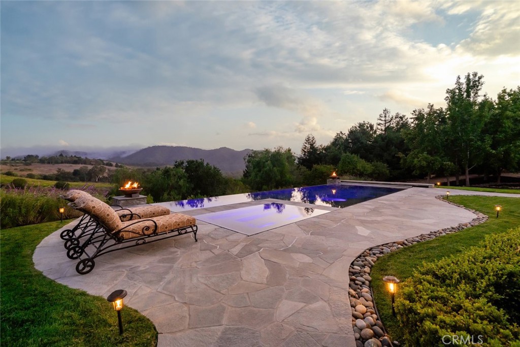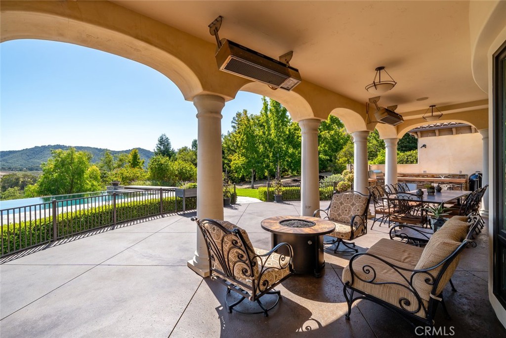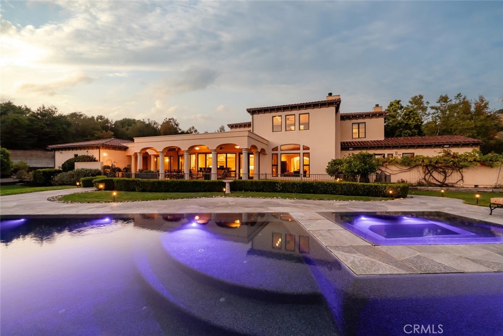 Tucked behind the gates of Bassi Ranch in the serene Avila Valley, this extraordinary property combines privacy, luxury, and timeless Tuscan-inspired architecture. Entering the gated community and turning down the private driveway, the remarkable views are sure to capture your attention. The property is recessed below street level, the residence is hidden from view, offering privacy while framing sweeping views. The home sits on a 3-acre parcel with additional land for exclusive use of this property for equestrian or agriculture. The home has exquisite amenities such as pre-paid solar and battery a backup system, infinity edge pool, fully landscaped and a spacious 4 car garage. A grand motor courtyard welcomes guests with room for over 14 vehicles. The custom floor plan provides the primary suite, a large office, a guest suite accessing the large, secluded courtyard and all living areas on the entry level to provide easy living. The house offers an extravagant entry with two story ceilings. The living room provides grand ceilings with wood beams and sprawling views of the valley and rolling hills. It also includes a wood burning fireplace and surround sound. The chef’s kitchen, designed for both function and beauty, has dual islands, double ovens, two sinks, two dishwashers, striking marble countertops, and space for everyone to cook and congregate together. The kitchen has beautiful picture windows overlooking the scenic Avila Valley and infinity pool which showcases two fire pits, speakers and ambient lighting. The kitchen and living room flow out into the back yard, where the heated infinity pool and spa overlook the horizon and surrounding valley views. The outdoor patio includes a built-in BBQ and sink. The partially covered patio area has built-in heaters. The primary suite is a sanctuary with an adjoining office, a large walk-in closet, and a spa-worthy bathroom. The shower features triple shower heads and a built-in bench. The primary bedroom leads to a private outdoor patio, adjacent to the pool and back yard. The spacious dining room is adjacent to the kitchen and opens to the private side patio. Upstairs provides a large den with sweeping views and two large storage rooms. It also has a deck to relax or greet your visitors. The two wings on the upper-level offer 4 total bedrooms and 2 guest bathrooms designed in a jack and jill orientation for ease and convenience. This estate offers true elegance and showcases the essence of luxury living.