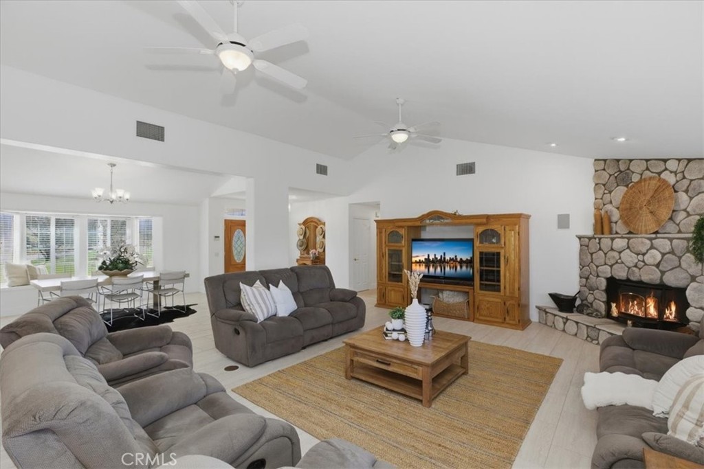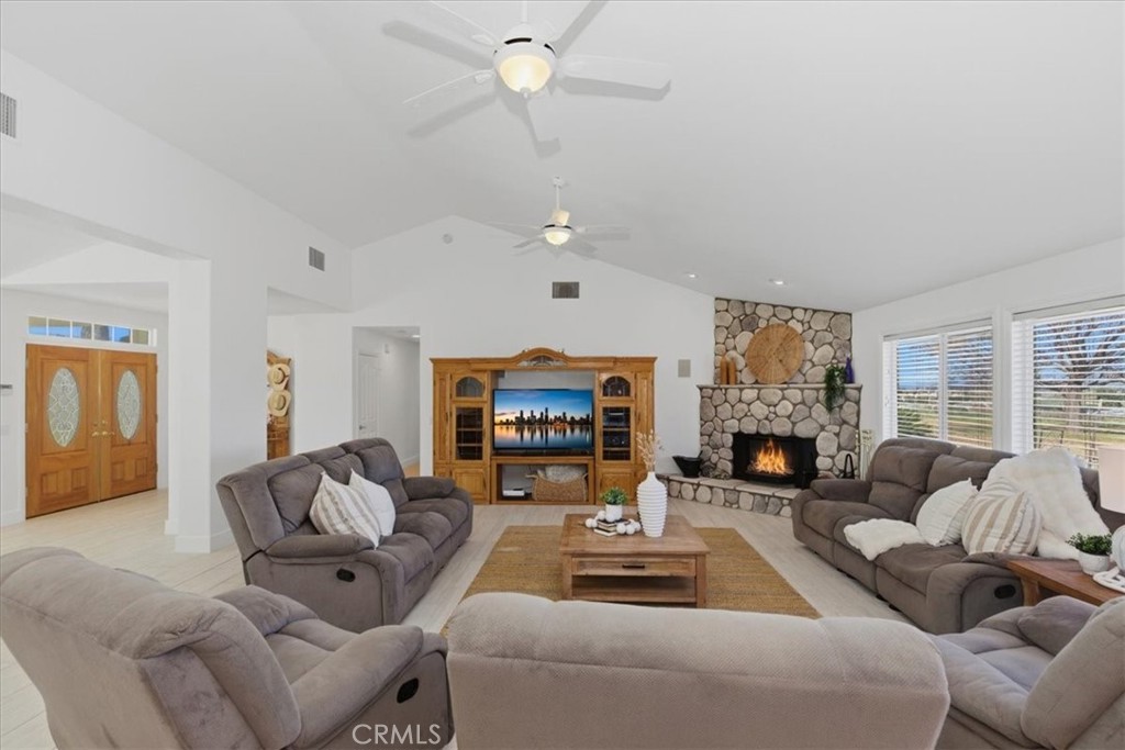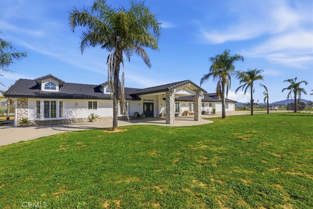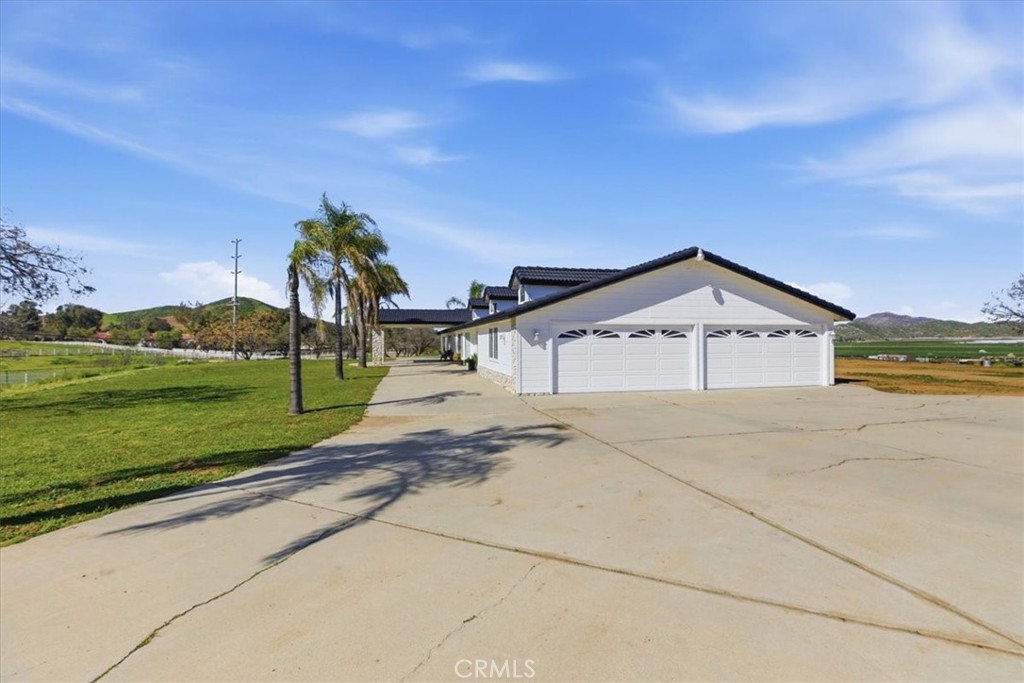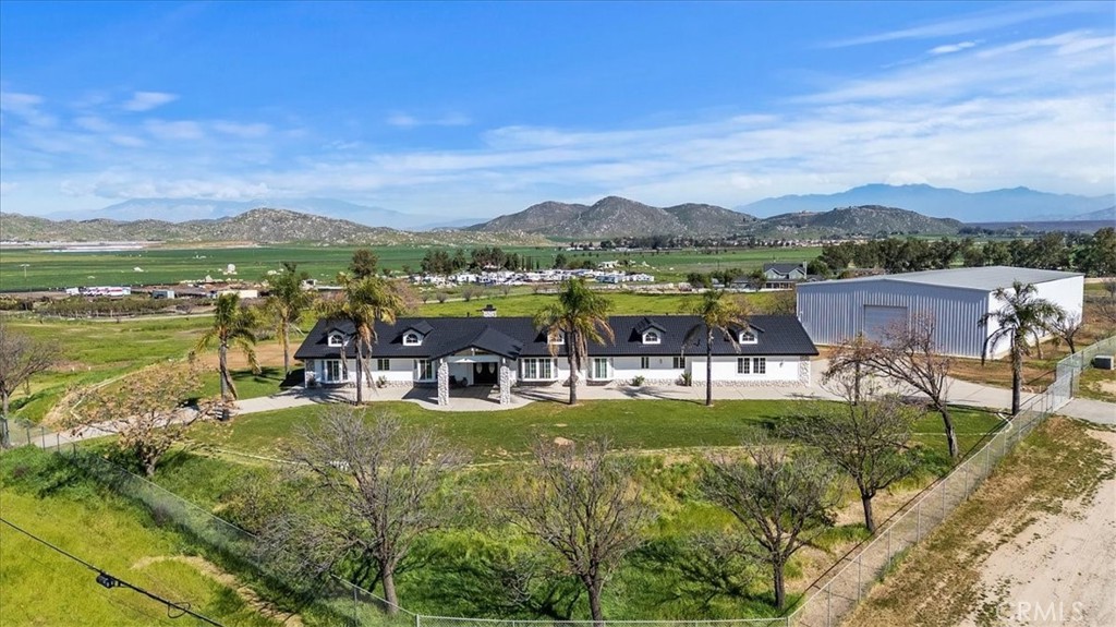 HUGE WAREHOUSE 7,200 SQFT ON 10 ACRES of land with a GORGEOUS CUSTOM BUILT HOME that has amazing views. RARE opportunity to own this property that has so much to offer. LIVE AND WORK OR PERFECT FOR HOBBYIST. It is gorgeous with an expansive open floor plan and perfect for a large family. Beautiful BRAND NEW TILE ROOF, BRAND NEW TILE WOOD-LIKE FLOORS and BRAND NEW INTERIOR AND EXTERIOR PAINT. 4 spacious bedrooms and 3.5 bathrooms allows for plenty of space and separation. The ENORMOUS kitchen features brand new stainless steel appliances such as double ovens, perfect for holiday cooking, a cooktop with a downdraft and new dishwasher. The kitchen overlooks the large family room where your whole family can enjoy and you can entertain for large gatherings. Living room features a rock fireplace with a heaterlator Quadra-fire-insert blower that will warm the whole house up and surround sound. One bedroom and full bathroom is on opposite side of the home, and the primary bedroom is oversized with a walk-in closet. The WORKSHOP IS MASSIVE with 7200 sqft (60x120 feet) and 2 14 foot high roll-up doors that you can drive SEMI TRUCK THRU! 2 additional 10 foot roll up doors as well. The workshop has reinforced extra thick stamped concrete perfect for parking a SEMI truck or heavy equipment. It was constructed to be a 2 story building (please see permits or city). This property is located in the County of Riverside and was rezoned recently for storage parking as well. Perfect way to make extra income. There are 5 entry ways to get on the property making a perfect space for separation if you run a business from the property. It is also horse property and would make a great ranch. The workshop is also built to make the workshop an indoor barn. Possible future development adds even more flexibility for this property. There are endless possibilities and usages for the new buyer. Septic system was just pumped and serviced and the propane was just filled.