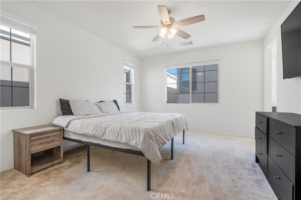 WHY WAIT FOR NEW CONSTRUCTION? MOVE-IN READY IN GATED SHADY TRAILS! Welcome to this upgraded 2022 home in the exclusive gated community of Shady Trails—offering the space and feel of a single-family home with the low-maintenance ease of a modern townhome. PAID SOLAR + ENERGY EFFICIENCY Enjoy major monthly savings with a home designed for efficiency. Fully PAID OFF solar panels 240V EV charging outlet in the garage Tankless water heater OPEN-CONCEPT LIVING + FLEXIBLE LOFT Bright, spacious, and move-in ready with a layout that fits real life. 3 bedrooms + loft (ideal office, gym, playroom, or potential 4th bedroom) Two walk-in closets Dedicated laundry room upstairs with easy access near bedrooms Modern finishes, sleek cabinetry, and great flow throughout PRIVATE, LOW-MAINTENANCE BACKYARD Relax on weekends—no yard work needed. HOA-maintained front landscaping plus a private backyard with premium artificial turf, perfect for pets, kids, and entertaining. RESORT-STYLE AMENITIES JUST STEPS AWAY You’re not just buying a home—you’re buying a lifestyle. Located just 100 steps from the pool, gym, kids’ park, and basketball court. Two fitness centers Multiple pools and spas Tennis courts and Private movie theater and library Three dedicated office/work areas (great for hybrid work) PRIME LOCATION Walking distance to the Jessie Turner Health & Fitness Center and minutes to Victoria Gardens, Sierra Lakes shopping, dining, and entertainment. Schedule your tour today and see why this Shady Trails gem is the one you’ve been waiting for!