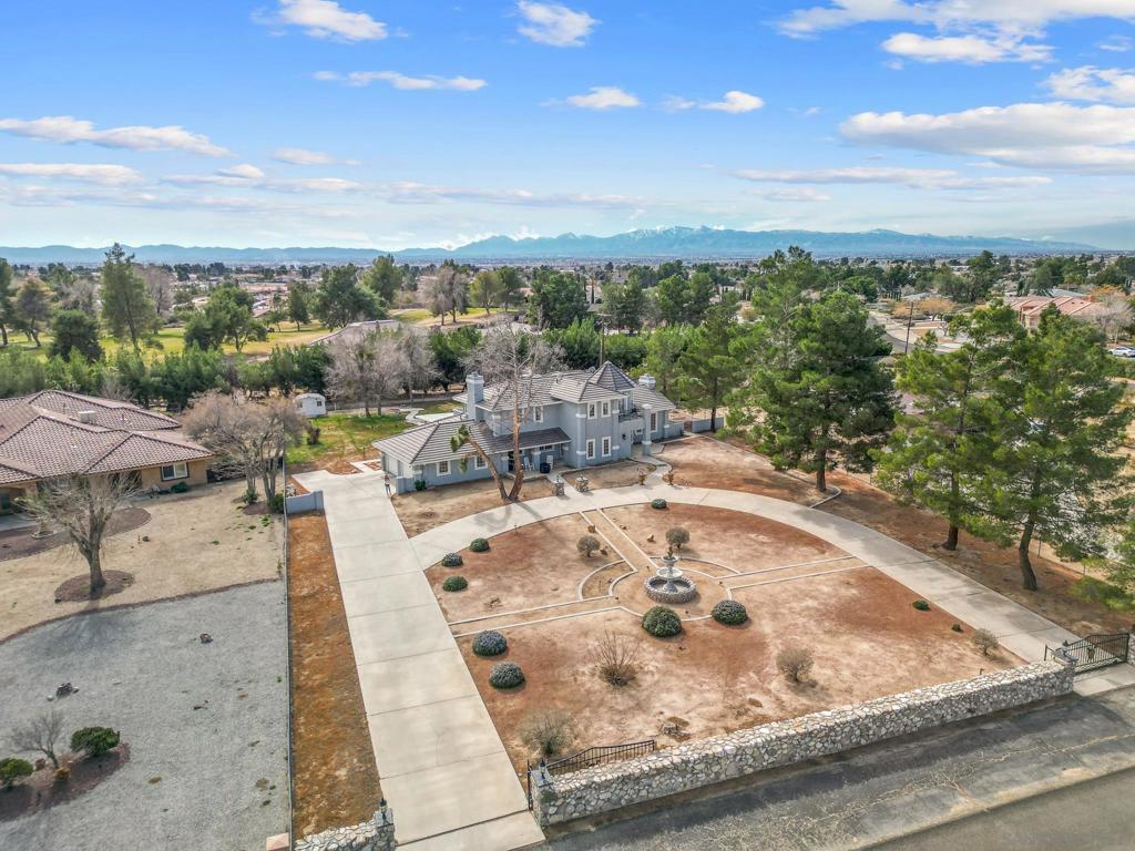 Experience luxury living in this custom Mediterranean estate built by renowned builder Bud McCarter, located in the prestigious Apple Valley Ranchos within the highly desirable Apple Valley Golf Course community. Situated on a private one-acre gated lot, this impressive 3,669 sq ft residence offers 4 bedrooms, 3.5 bathrooms, and a grand two-level design with golf course and mountain views. A striking stone wall entry and dual electric wrought iron gates lead to a circular horseshoe driveway surrounded by mature trees and park-like grounds. Outdoor features include a regal water fountain, sustainable desert landscaping, three private balconies, RV parking, and extensive guest parking ideal for entertaining. Inside, the home showcases a dramatic circular foyer, soaring beam and tray ceilings, an elegant oakwood staircase, hardwood and marble flooring, and custom plantation shutters throughout. Two gas/wood-burning fireplaces enhance the formal living room and main living spaces. The spacious primary suite offers a private retreat featuring a library loft and balcony access, creating a peaceful space to relax and enjoy scenic views. Additional highlights include generous living areas, timeless architectural details, and an oversized two-car garage with built-in oak cabinetry for storage. This exceptional estate offers privacy, space, and classic Mediterranean elegance in one of Apple Valley’s most sought-after golf course communities. Seller willing to credit buyer towards closing and 50k towards a new pool.