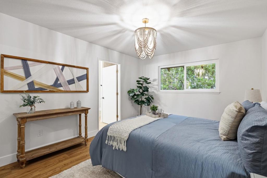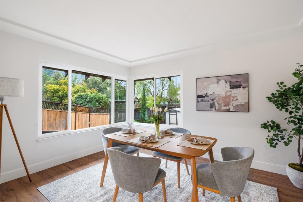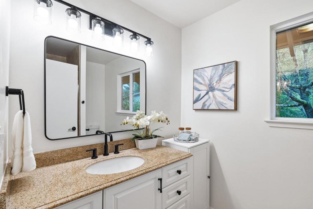 Located in one of Scotts Valleys most desirable neighborhoods, this extensively remodeled 2 story home offers 1,942 sqft of living on a private 17,424 sqft lot. The layout provides space for everyone and everything, whether relaxing in private, hosting friends, or enjoying time with family. Entry level offers 3 beds, 2 baths, dining area, & a kitchen featuring new quartz countertops, new sink & faucet, new cooktop, oven & microwave, new hardware, & refinished cabinets. The primary suite, 2 additional bedrooms, and hall bathroom are thoughtfully arranged on one side of the home for privacy and convenience, & a flexible bedroom/office space at the front of the house. Downstairs, the spacious living room boasts soaring ceilings & a cozy fireplace with large windows & a sliding door showcasing the surrounding scenery & providing easy access to the backyard. Off of the living room is a laundry room & versatile flex space for a mudroom, home office, or additional storage. Surrounded by nature, the oversized backyard feels like a private retreat, offering both functionality and tranquility with a generous patio, ideal for entertaining or relaxing. Located near HWY 17, this home provides easy access to Santa Cruz and Silicon Valley, while offering a peaceful retreat for family life.