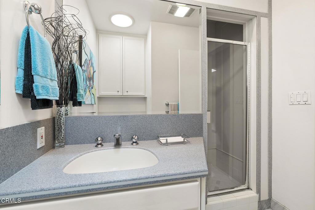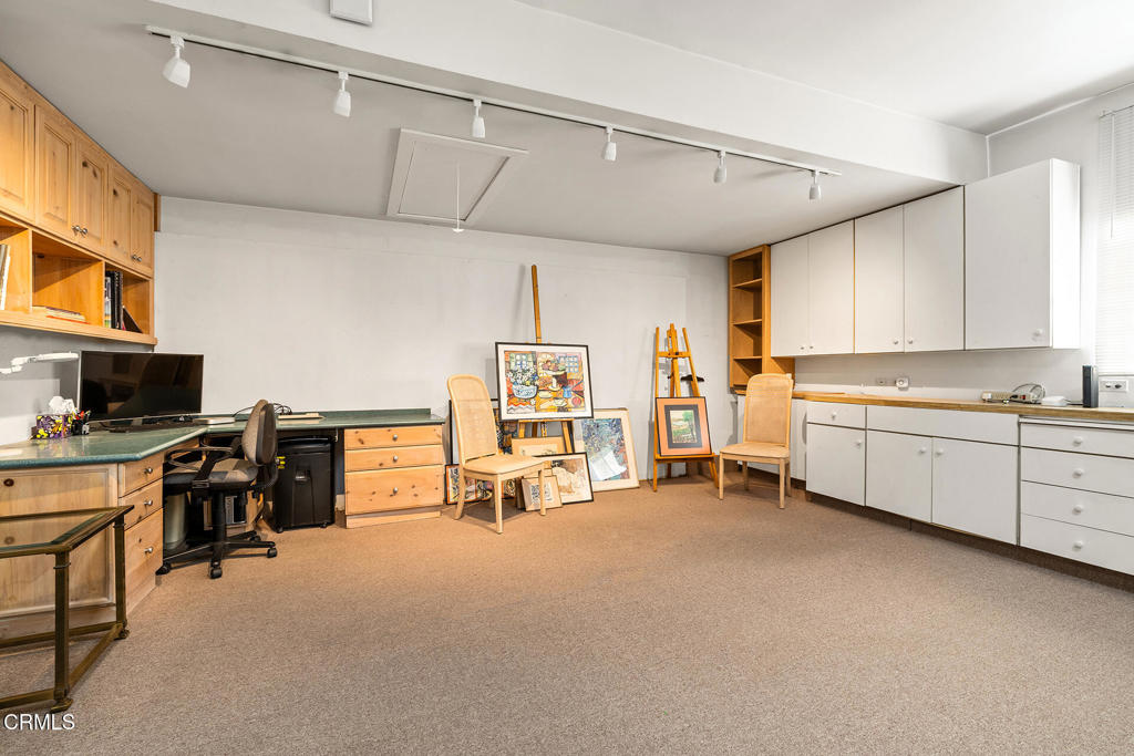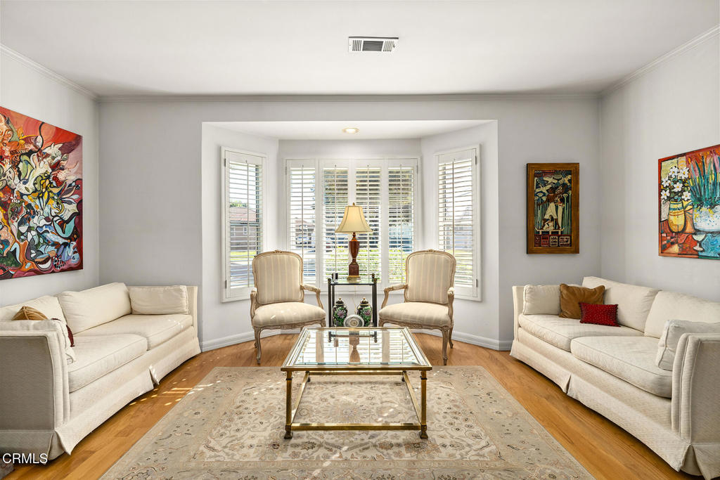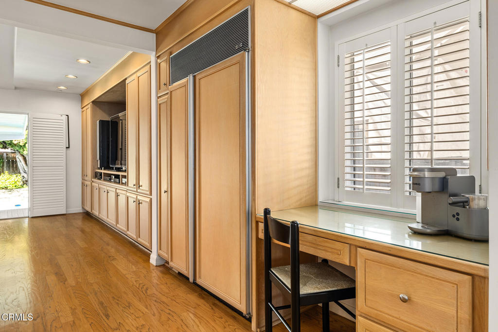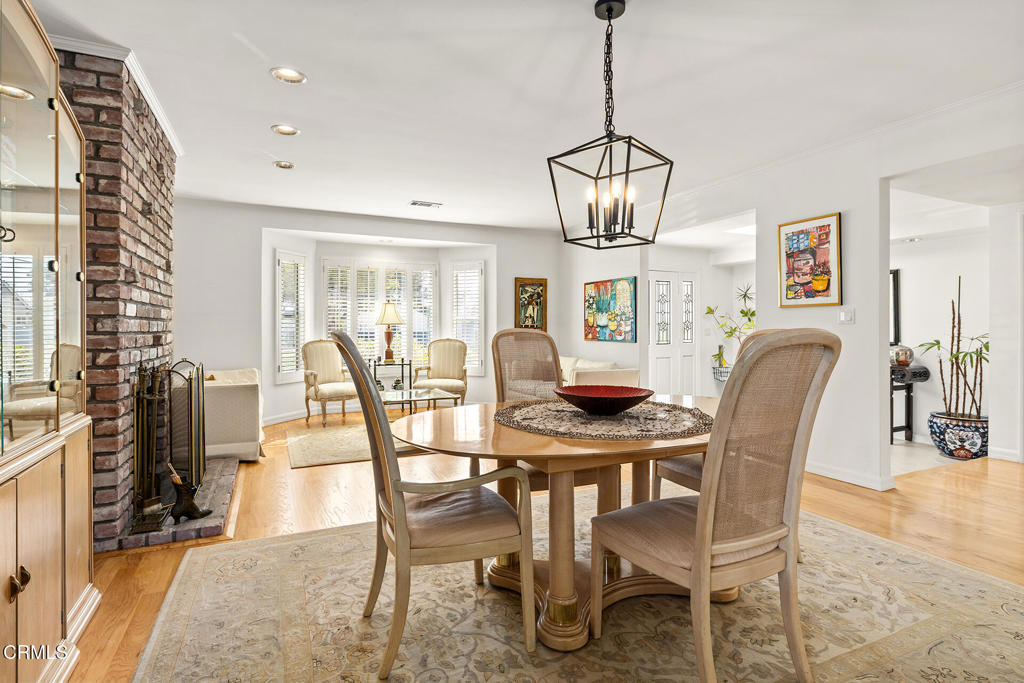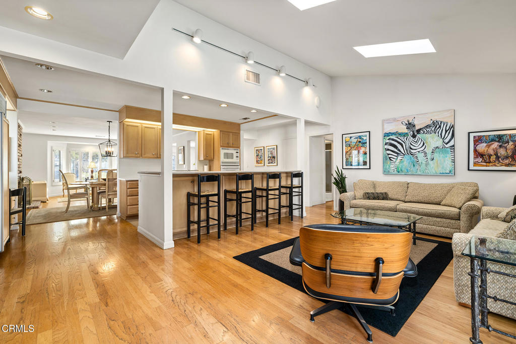 Welcome to this prime Lakewood home in pristine condition and in a fantastic location. The formal skylit entry leads you to the open living and dining room with a bay window, fireplace, and wood flooring. The adjacent kitchen with an extra long island is completely open to the separate family room which boasts vaulted ceilings and skylights. The updated kitchen has a built-in SubZero refrigerator, recessed lighting, 6-burner Viking stove, a dishwasher, a built-in microwave and wall oven, a built-in desk/coffee station, and ample storage. The family room has a custom-built entertainment center with even more storage and a triple wide glass slider leading to the backyard covered patio. The attached garage is finished with cabinetry and counter space, currently a studio that can serve as a workspace, hobby room, or additional storage. The bedrooms all have brand new carpeting and custom shutters, two of which lead to the backyard with glass sliders. Both bathrooms have been completely updated and there's a separate laundry room with cabinets. The entertainer's backyard offers a covered patio, pool, spa, and stone paver patio with multiple seating areas and lush, mature landscaping. Close to shopping, parks, schools, restaurants and more, this quality home has it all!