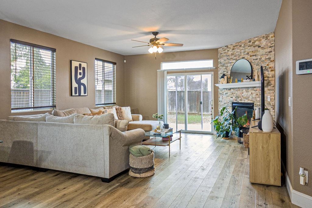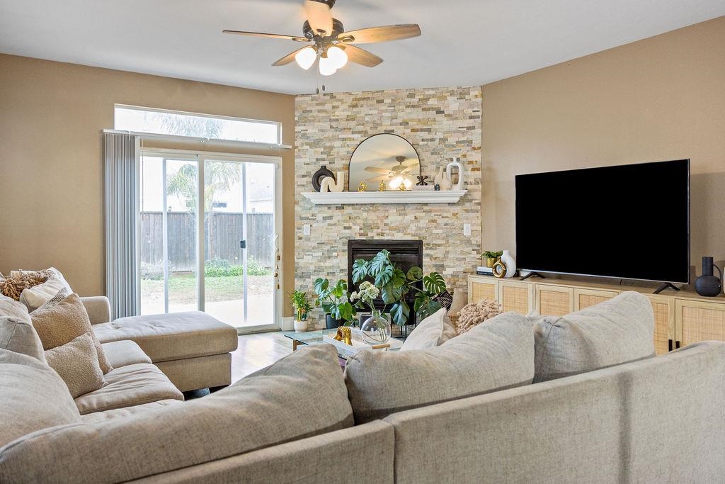 Welcome to 3624 Palermo St, Stockton. This beautifully remodeled 3 Bedroom /2-bathroom home is where warmth, style, and thoughtful upgrades come together effortlessly. Offering approximately 1,756 square feet of well-designed living space, the home features a striking stone-accented fireplace, new laminate flooring, updated baseboards, and contemporary lighting, creating a bright, welcoming ambiance. The heart of the home is the formal living & dining room with an expansive kitchen with a breakfast nook, showcasing abundant wood cabinetry, sleek countertops, stainless steel appliances, recessed lighting, and a peninsula with bar seating that opens seamlessly to the living and dining areas—ideal for everyday living and entertaining. Indulge in luxury with the amenities this Master Suite offers, including a huge walk-in closet, delightful his and hers vanity sink, laminate floor and stall shower. A newer AC unit provides year-round comfort, while the low-maintenance backyard offers stamped concrete, a brand-new shed, and rare RV access. Ideally located near Lincoln Center, Victory Park, the Miracle Mile, and the Stockton Marina, with convenient access to major commuter routes, this turnkey residence delivers exceptional comfort, functionality, and lifestyle appeal.