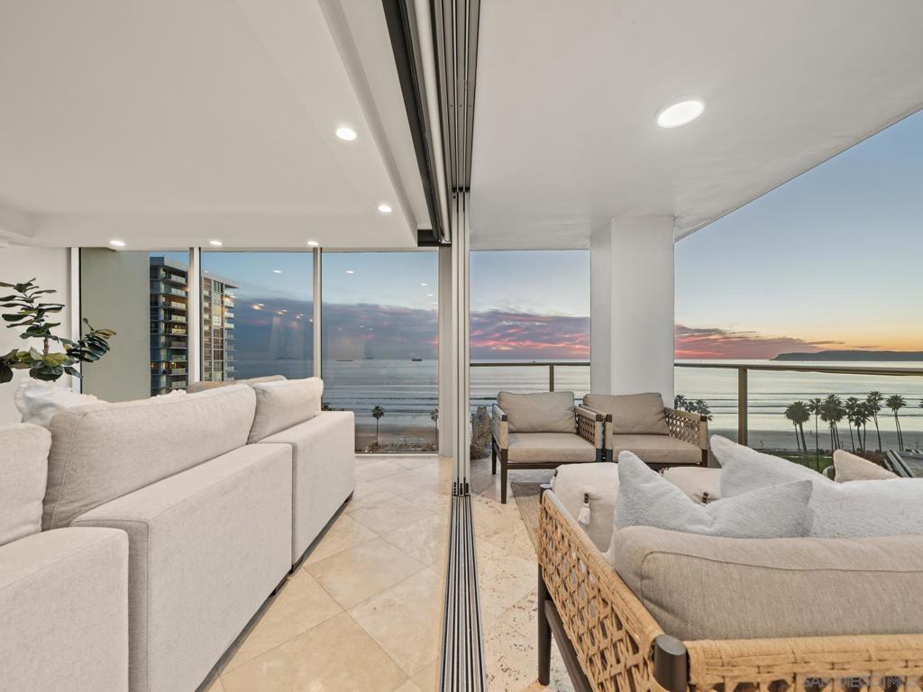 If you’ve been waiting for a truly special ocean front corner unit with panoramic views in multiple directions, this home delivers an experience that’s hard to replicate in Southern California! Situated on the 9th floor, this home captures sweeping Pacific Ocean views, Point Loma sunsets, and the San Diego Bay and downtown skyline, creating breathtaking scenery from sunrise to the city lights at night. Fireworks over the bay, glowing sunsets, and the sound of the waves become part of everyday life. Inside, the light-filled open floor plan feels warm and refined with timeless travertine flooring and granite countertops throughout, as well as a soft neutral palette. Expansive sliding glass doors create seamless indoor-outdoor living and open to a spacious private balcony, perfect for morning coffee, sunset dinners, or taking in the views. The primary suite offers ocean views, a walk-in closet, and a spa-inspired bath with a jacuzzi soaking tub. With ocean views from every room, this turnkey and professionally decorated home is ready for personal enjoyment as a home or exceptional rental opportunity. With its ideal height, tasteful finishes, and unforgettable views in every direction, this is a rare gem for the discerning buyer who values breathtaking views, beachfront living, and everything Coronado has to offer!