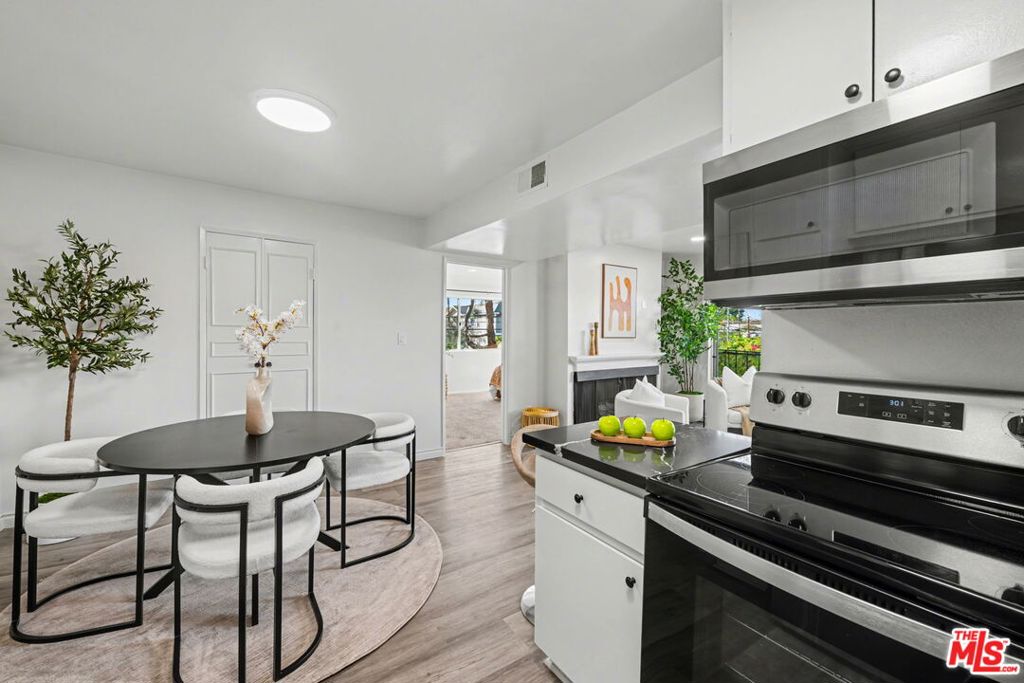 Stylishly updated 2BR/2BA condo in the heart of Sherman Oaks featuring a desirable split-bedroom layout and two parking spaces. The open living room is anchored by a spacious private ensuite balcony, creating an ideal indoor-outdoor flow, perfect for morning coffee or unwinding with a favorite drink under the stars. Thoughtful upgrades include luxury vinyl plank flooring, fresh paint, modern lighting, sliding closet doors, new LED vanity mirrors, and a reimagined wet bar with built-in storage. The kitchen features quartz countertops and new stainless steel appliances, along with in-unit washer and dryer, Nest system, and a cozy gas fireplace. The Consulate building offers a heated pool, BBQ area, gated tandem parking, and elevator access. Unit #203 is a corner unit providing great windows and increased natural light. An excellent opportunity for an owner-user or rental, conveniently located near the Kester Elementary School district, Ventura Blvd, Sherman Oaks Galleria, parks, and easy access to the 101 and 405 freeways. An ideal starter home in Sherman Oaks, done right!