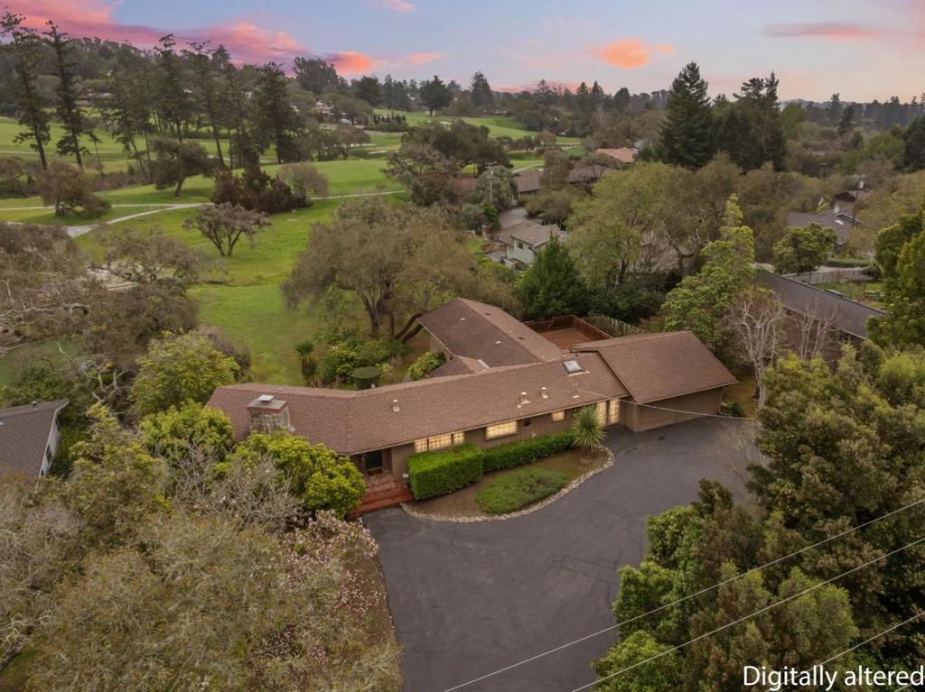 Situated on just over an acre, this sprawling ranch-style two bed/two bath home overlooks the 16th fairway, presenting gorgeous views of the golf course, designed by Dr. Alistair Mackenzie, creator of the esteemed Augusta Course. Imagine cruising to the course on your golf cart via the backyard. Offering the best in California indoor-outdoor living thanks to ample redwood decking and oversized windows that provide gorgeous natural light and bring the outside in. Home chefs will love the custom copper hood, ample counter space, and oak cabinets. The living room is anchored by an inviting fireplace, great for curling up next to with a good book during the cooler months. Escape from daily life in the primary suite with its private entrance to the patio, an ideal spot to unwind and watch the red-tailed hawks soaring through the sky at sunset. The circular driveway makes entering and exiting Graham Hill a breeze and offers ample parking. Ideally located with easy access to Scotts Valley, Santa Cruz, commuter routes, outdoor recreation, Brook Knoll School, and more. Mature landscaping with Japanese Maple, drip irrigation system, Corian countertops in the bathroom, storage, no HOA fees, and room for expansion for a third bedroom within the current footprint if desired.