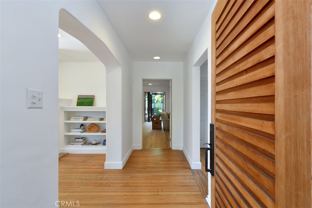 Artsy Laurel Canyon vibes in coveted Colfax Meadows. Excellent school district, restaurants, cafes and parks. This custom two-story home is filled with natural light, lush green views, and exceptional privacy. High ceilings and wood floors are some of the highlights. A calm bright aesthetic flows from the open kitchen to the expansive great room with fireplace, built-ins, and walls of glass opening to a vine pergola patio and separate pool area—ideal for entertaining. Formal dining with French doors leads to the wisteria drenched private patio perfect for entertainment or children's play area. Next to kitchen is a butler’s pantry, powder room, and direct-access two-car garage with storage. Also downstairs are a formal living room with a fireplace and built-ins, and a private bedroom suite with full bath, perfect for guests or office. Upstairs features three bedrooms and a sun-filled sitting room. The primary suite offers a fireplace, large sitting area, walk-in closet, and spa-like bath with soaking tub, double sinks, and separate shower. The two additional bedrooms share a full bathroom. Upstairs landing can be used as mini library or extra workspace. Corner lot for extra privacy and ample street parking for guests. Custom built and reimagined by architect Richard Olander. Moments to Tujunga Village, Farmers Market, Aroma Café, Zoned Carpenter School. A home you shouldn't miss... its special!