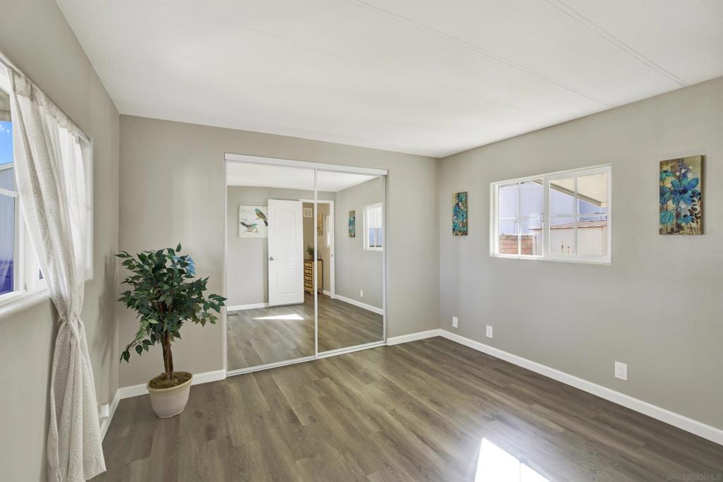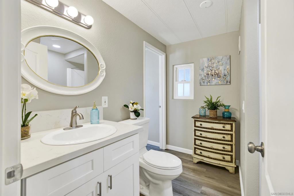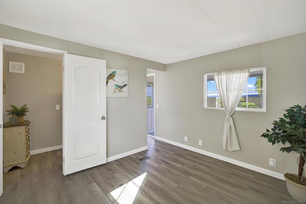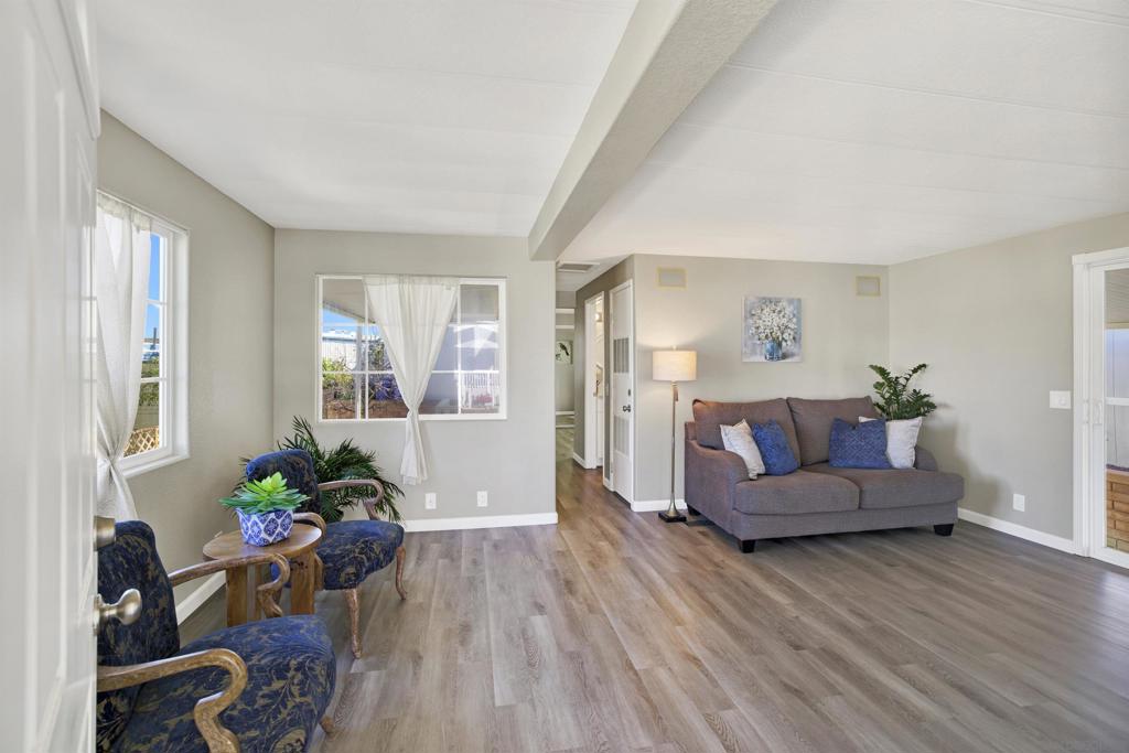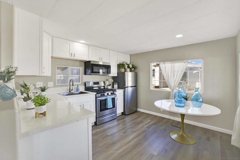 **LAND OWNED – 55+ Community in Sierra Vista Park!** Own the land in this highly desirable senior community in Vista! This affordable 1 bedroom, 1 bathroom home is located in the well-maintained Sierra Vista 55+ neighborhood. Beautifully upgraded approximately two years ago, the home features bullnose corners, fresh interior and exterior paint, vinyl flooring with updated baseboards, recessed lighting, and a remodeled kitchen with soft-close cabinetry, quartz countertops, stainless steel appliances, new sink, and disposal. Roof was recently resealed. The detached shed conveys and functions as a full laundry room with hookups plus additional storage. Low HOA dues of $275/month include water, sewer, trash, and basic cable. Community amenities include clubhouse, billiard/game room, swimming pool, spa, exercise room, and library. Park improvements include gas and electric system upgrades to each unit, new street lighting, and freshly paved roads. Low-cost RV parking available. Conveniently located near shopping, dining, and all that Vista has to offer. A great opportunity for affordable, land-owned senior living in North San Diego County. Located in the desirable city of Vista in North San Diego County, this property offers the perfect blend of small-town charm and everyday convenience. Enjoy a mild coastal climate, scenic rolling hills, and a strong sense of community. Vista features vibrant downtown dining, breweries, shopping, and year-round events, along with outdoor attractions such as Brengle Terrace Park, Alta Vista Botanical Gardens, and the popular Moonlight Amphitheatre. Convenient access to Hwy 78, I-5, and I-15 provides easy commuting, while North County beaches are just a short drive away. An ideal location offering lifestyle, recreation, and value.