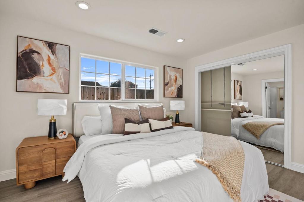Nestled in the desirable Hill Vista community, this beautifully updated 5-bedroom, 3-bath single-level home offers the perfect blend of space, style, and convenience. The open, light-filled floor plan features large windows and flows seamlessly into the spacious family room with vaulted ceilings - ideal for everyday living and entertaining. The updated kitchen showcases modern countertops and new stainless-steel appliances, including a refrigerator, dishwasher, stove, and range hood. Five generously sized bedrooms provide excellent flexibility for families, home offices, or multi-generational living, including a private primary suite with an en-suite bath. Recent upgrades include new flooring, fresh interior paint, refinished doors, updated bathroom cabinets and mirrors, new washer and dryer, new toilets, garbage disposal, and upgraded bathroom exhaust fans. Enjoy a spacious front and backyard, perfect for outdoor relaxation. Conveniently located near Newark Lake, Newark Community Park, major freeways (880 & 84), and top Silicon Valley employers such as Tesla, Meta, Amazon, Google, and Lucid. Move-in ready and a must-see!