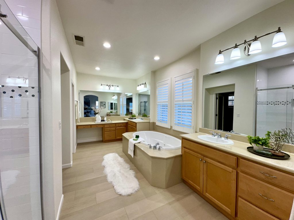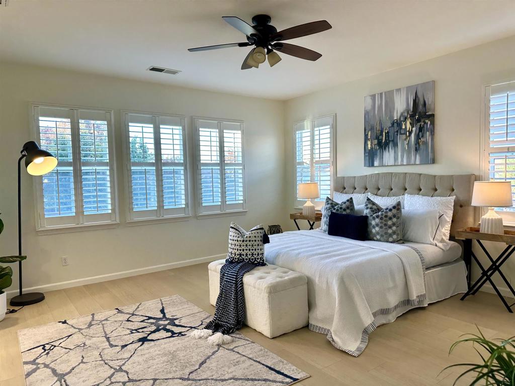 Executive EAST FACING HOME fronting a vibrant walking trail. Wonderful open floor plan, lots of light & space. Bedroom and full bath in the lower level, luxurious primary BR, jacuzzi tub in master bath, huge walk-in closet. All brand new LV Flooring throughout, separate laundry room. Formal Living, Dining and Family Room, gourmet kitchen, quartz counter top with stainless steel appliances, new combo wall oven/microwave, new dishwasher, new range hood, new beverage cooler, newer cooktop stove, large pantry. New ceiling LED lights. Window plantation blinds. Convenient 3-car side by side on this corner lot of 9,562 sq. ft with mature landscaping. Just move-in and have the pride to own this beautiful home. 2AX Model only 5 exists in this Bethany Village charming neighborhood. Great schools, walk to Bethany Elementary and just a little over a mile to Mountain House High School. Delta College is near-by. Apply with RentSpree https://apply.link/IYqSaQs