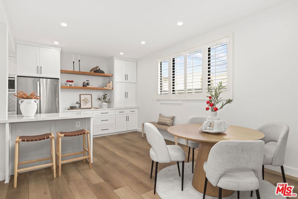 This quiet and private 3-bedroom, 2.5-bath end-unit townhouse was thoughtfully transformed in 2021 with no detail overlooked. The current owners invested extensively to create a stylish and highly functional home for themselves after welcoming their first child, and are now ready to pass it on. The reimagined kitchen features custom cabinetry, stainless steel appliances, updated countertops with an extended island, new sink and fixtures, and upgraded hardware. New flooring and baseboards run throughout the home, complemented by fresh interior paint and energy-efficient lighting. Additional improvements include a resurfaced fireplace, custom-built closets and doors, remodeled bathrooms with updated fixtures, a new stair railing, a redesigned laundry room with new appliances and built-ins, a newer HVAC system, upgraded electrical panel, a new water heater, and more. The well-designed floor plan is ideal for both everyday living and entertaining. An inviting living room flows seamlessly into the dining area and open kitchen. Just off the dining space is a convenient powder room and access to the lower level, where you'll find the laundry room and direct entry to a secure, semi-private garage. The garage offers side-by-side parking and an oversized, private storage room. Upstairs, three spacious bedrooms complete the home--none of which share a wall with a neighboring unit! Additional highlights include central air and heat, a well-managed HOA with strong reserves, and earthquake insurance. Ideally located north of Wilshire, this home is in close proximity to premier shops, dining, and everyday conveniences, and is served by highly-regarded Franklin Elementary School.