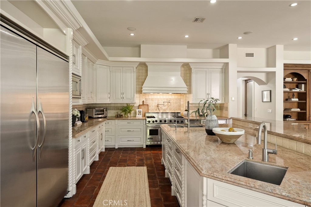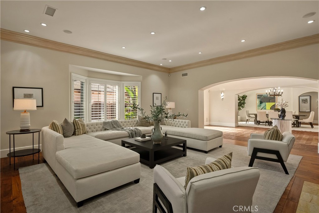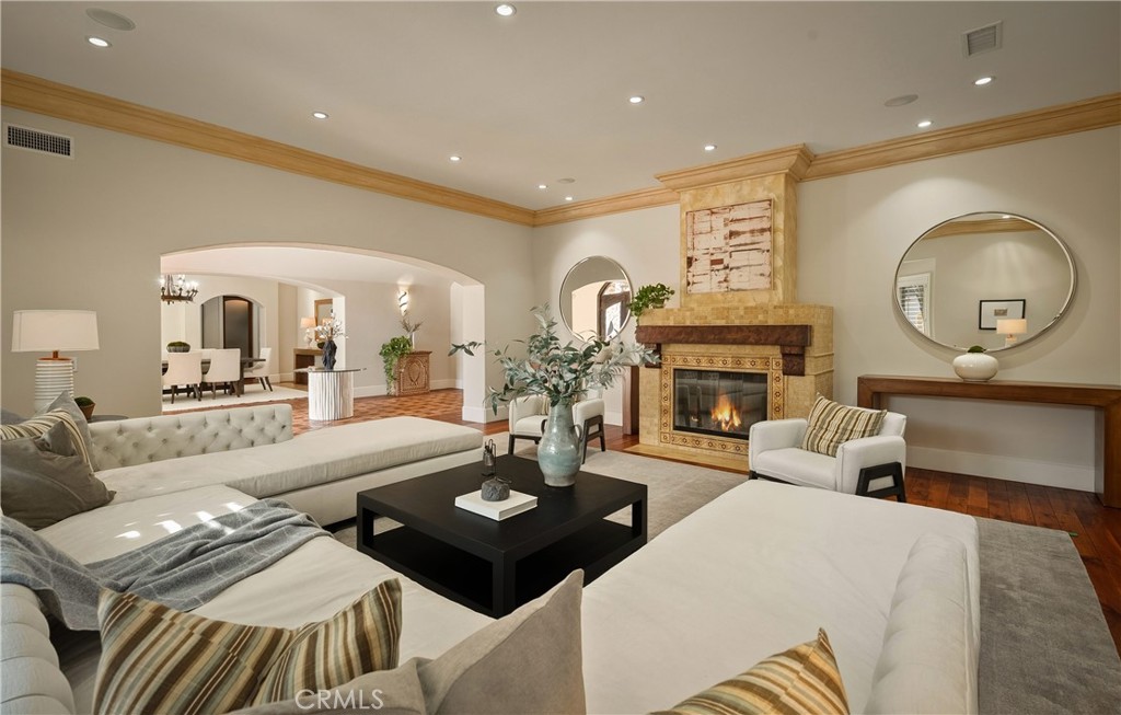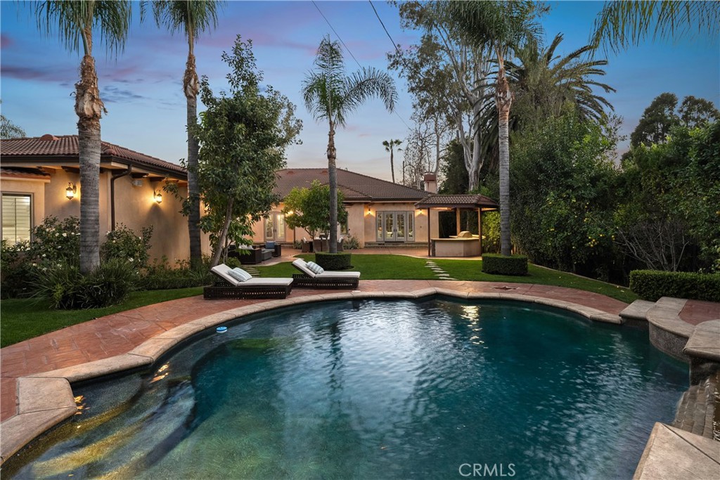 Set behind private gates on a sprawling 29,000+ sq. ft. lot in the coveted Chandler Estates neighborhood of Sherman Oaks, this contemporary Spanish estate effortlessly blends timeless architectural character with refined modern amenities. A dramatic double-door entry welcomes you into the grand foyer, setting the tone for the elevated living spaces beyond. The formal living and dining rooms were thoughtfully designed for elevated entertaining, perfect for hosting intimate dinners or large-scale celebrations. At the heart of the home you’ll find a spacious open-concept main living area, highlighted by a gourmet chef’s kitchen equipped with top-of-the-line Viking appliances, a sun-drenched breakfast nook and inviting family room designed for everyday living. French doors open to a resort-style backyard that's enveloped by mature privacy hedges. Take a refreshing dip in the PebbleTec pool and spa, entertain guests at the fully equipped outdoor kitchen or gather around the cozy built-in firepit. The possibilities are endless amidst the expansive patio space and lush grassy lawns. This home offers six generously sized bedrooms, five of which have ensuite bathrooms. The primary suite is a sanctuary unto itself, featuring a private sitting area, custom walk-in closet and spa-inspired bathroom, complete with a soaking tub, steam shower, dual vanities and a separate makeup vanity. Additional features include a dedicated laundry room, security system with cameras, high ceilings with built-in speakers throughout, plantation shutters on nearly every window, a large motor courtyard and six-car garage. Ideally located just moments from Westfield Fashion Square, Ventura Boulevard’s premier shopping and dining, top private schools (including Notre Dame, Harvard-Westlake, Campbell Hall, etc.) and so much more.