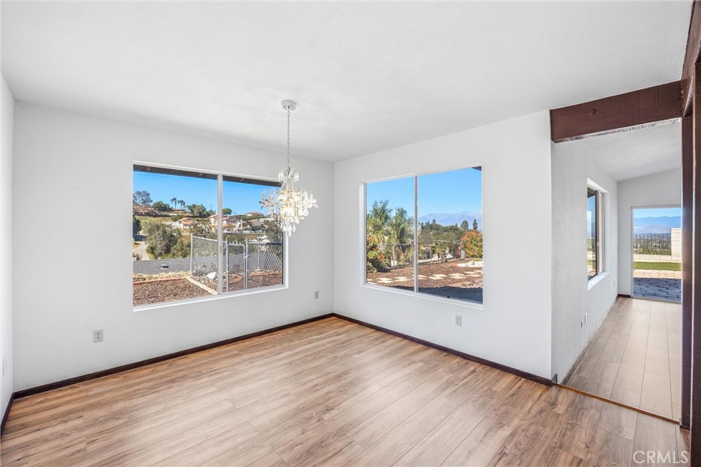 Welcome to the desirable Canyon Ridge Hills community of Riverside! This single-story 3-bedroom, 2-bath home sits on an expansive lot with breathtaking panoramic views of the surrounding mountains, valley, and sparkling city lights — a rare combination of space, privacy, and scenery. The versatile floor plan offers both formal and casual living areas, including a formal living room/bonus space and a separate family kitchen designed for everyday comfort and entertaining. The kitchen features granite countertops, stainless steel appliances, and an eat-at counter that opens to the main living area. A formal dining room highlighted by an elegant crystal chandelier provides the perfect setting for gatherings and special occasions. Step outside to discover the true standout: an oversized lot with endless possibilities. There’s ample room to add an ADU, pool, RV parking, or create your dream outdoor retreat — all while enjoying sweeping views in every direction. The covered side run offers a private, secure space for pets, and the drought-tolerant landscaping keeps maintenance low and efficiency high. With its premium lot, flexible spaces, and stunning vistas, this Canyon Ridge Hills property delivers both lifestyle and opportunity. Don’t miss your chance to make this view home your own!