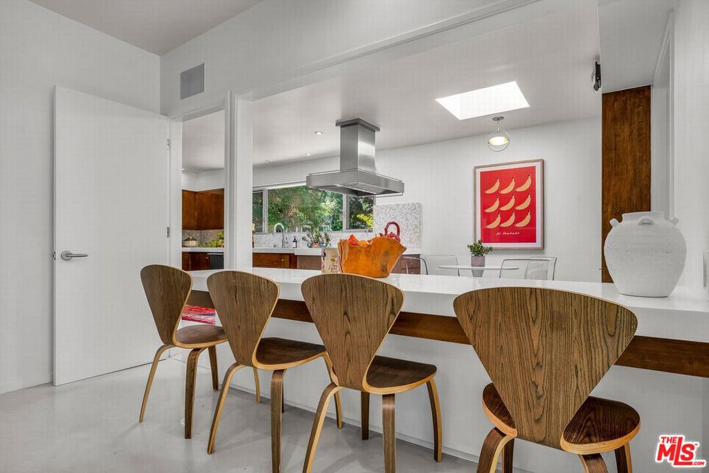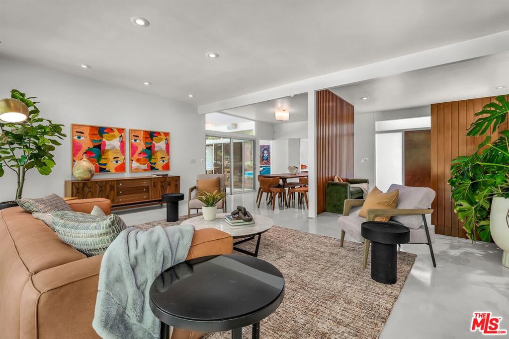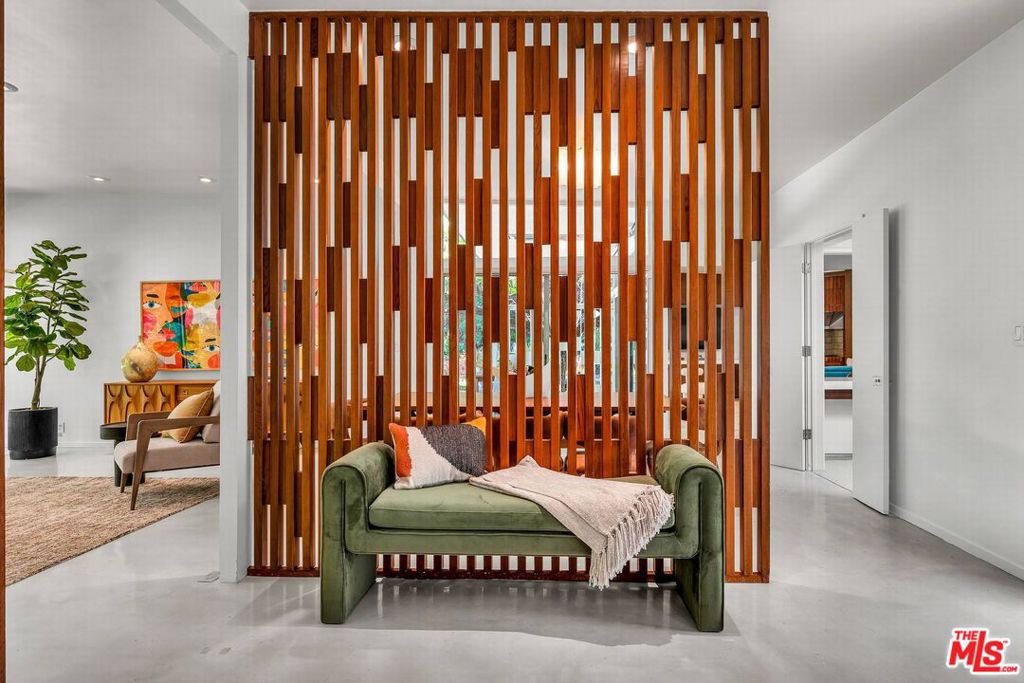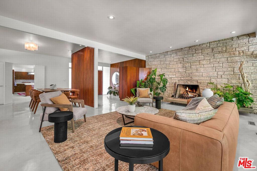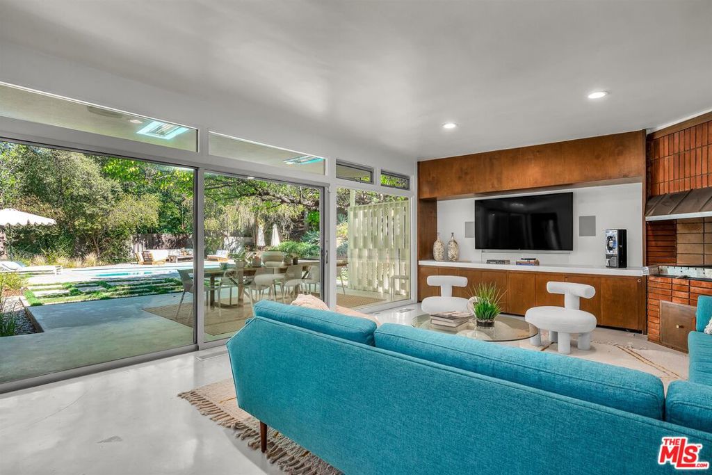 Designed by renowned architect James W. Larson, AIA, in 1957, this classic mid-century architectural retreat is privately set in the Encino hills on over half an acre of serene, natural surroundings. The residence beautifully embodies the defining elements of mid-century design clean horizontal lines, expansive walls of glass, seamless indoor-outdoor integration, and an effortless sense of elegance and flow.A lush front courtyard welcomes you to a dramatic double-door entry, opening into a refined living environment highlighted by hand-polished cement floors, rich hardwood accents, a striking stone fireplace, Fleetwood doors, and expansive floor-to-ceiling and clerestory windows that bathe the home in natural light. The spacious kitchen offers abundant wood cabinetry, quartz countertops, and premium stainless steel appliances by Miele and Wolf, combining functionality with modern sophistication.The resort-style backyard is ideal for entertaining and relaxation, featuring beautifully landscaped grounds, a saltwater pool, sundecks, a covered patio, and a tranquil hillside meditation and yoga studio. This exceptional property is a rare fusion of architectural artistry, timeless design, and elevated indoor-outdoor living.