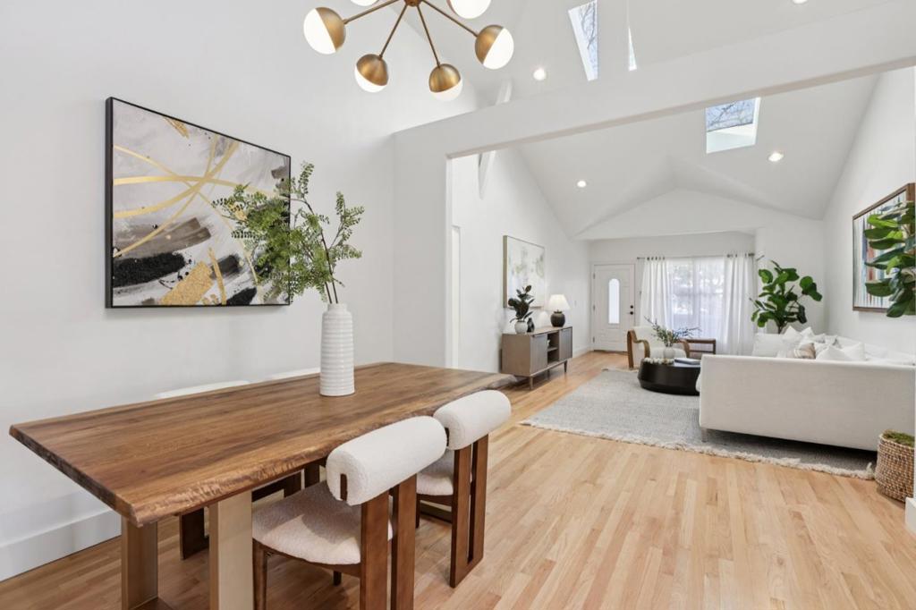 Welcome to 915 North Road, Belmont! This sunny, move-in ready, 3 bedroom, 3 bath home sits on a rare flat lot in the coveted neighborhood of Central Belmont. Enjoy the open concept living room that flows seamlessly into the dining area, kitchen, and family room. Vaulted ceilings, skylights, and oversized windows take in the abundant natural sunlight. The gourmet kitchen features a premium 6-burner gas stove and matching stainless steel suite of appliances. Plentiful cabinets provide ample storage and pantry space. Live that indoor-outdoor lifestyle year round, with a low-maintenance entertainer's backyard, complete with a covered pergola and playhouse/office. Amenities include three newly remodeled bathrooms with designer fixtures, a new 50-year roof, new gutters with leaf guard, French drains, professionally landscaped front and back yards, recessed lighting, hardwood floors, dual paned windows, new epoxy flooring in the garage, EV charger socket, a 200 amp panel ready for solar, and more! Near the shops and restaurants of downtown Belmont, Hillsdale Shopping Center, and downtown San Mateo; health clubs (Movement Climbing, Yoga & Fitness, F45 Training); and excellent schools: Central Elementary (8), Ralston Intermediate (8), Carlmont High (10) (buyer to verify enrollment).